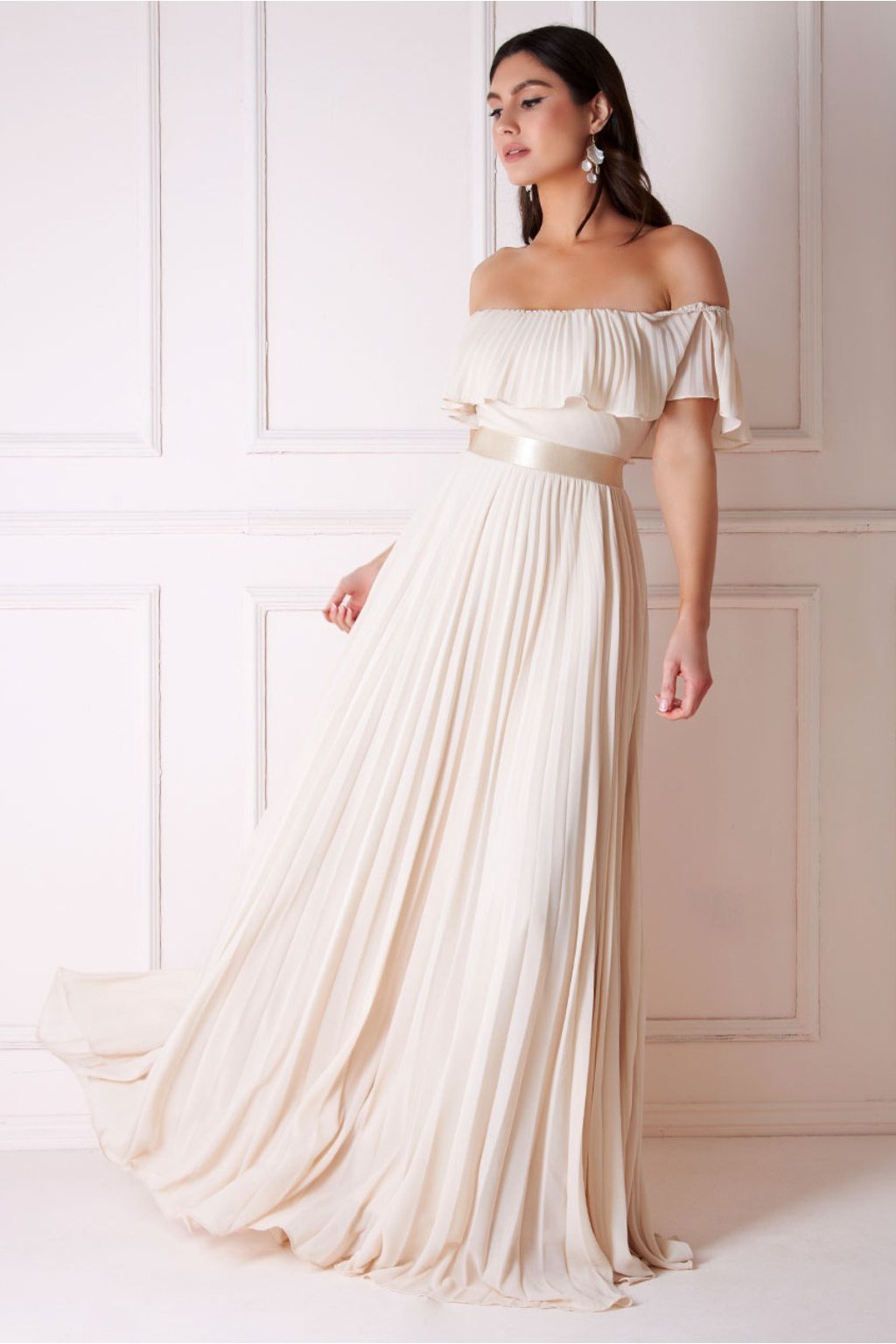 Milovnice něžných kousků si zajisté přijdou na své. Romantická a lehká sukně za sebou zanechá velkou dávku elegance a šarmu a odhalená ramena přispějí k poutavému vzhledu. Vzadu se šaty zapínají zipem.