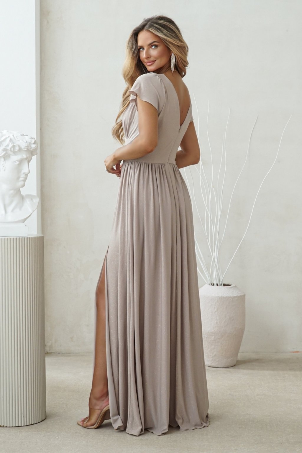 Pokud jste milovnicí všeho, co se třpytí, jsou pro vás tyto šaty jako stvořené. Díky vysokému rozparku vstoupíte do místnosti sexy krokem a nepochybně rozzáříte vše kolem sebe. Materiál šatů je mírně elastický a zadní část šatů se zapíná na zip. Třpytky nejsou všity do materiálu, přirozeně opadávají.