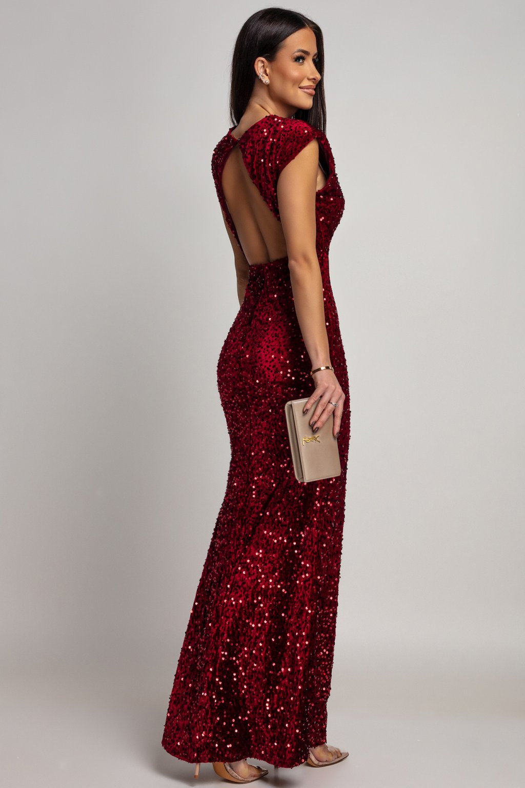 Bordové flitrované šaty s odhalenými zády