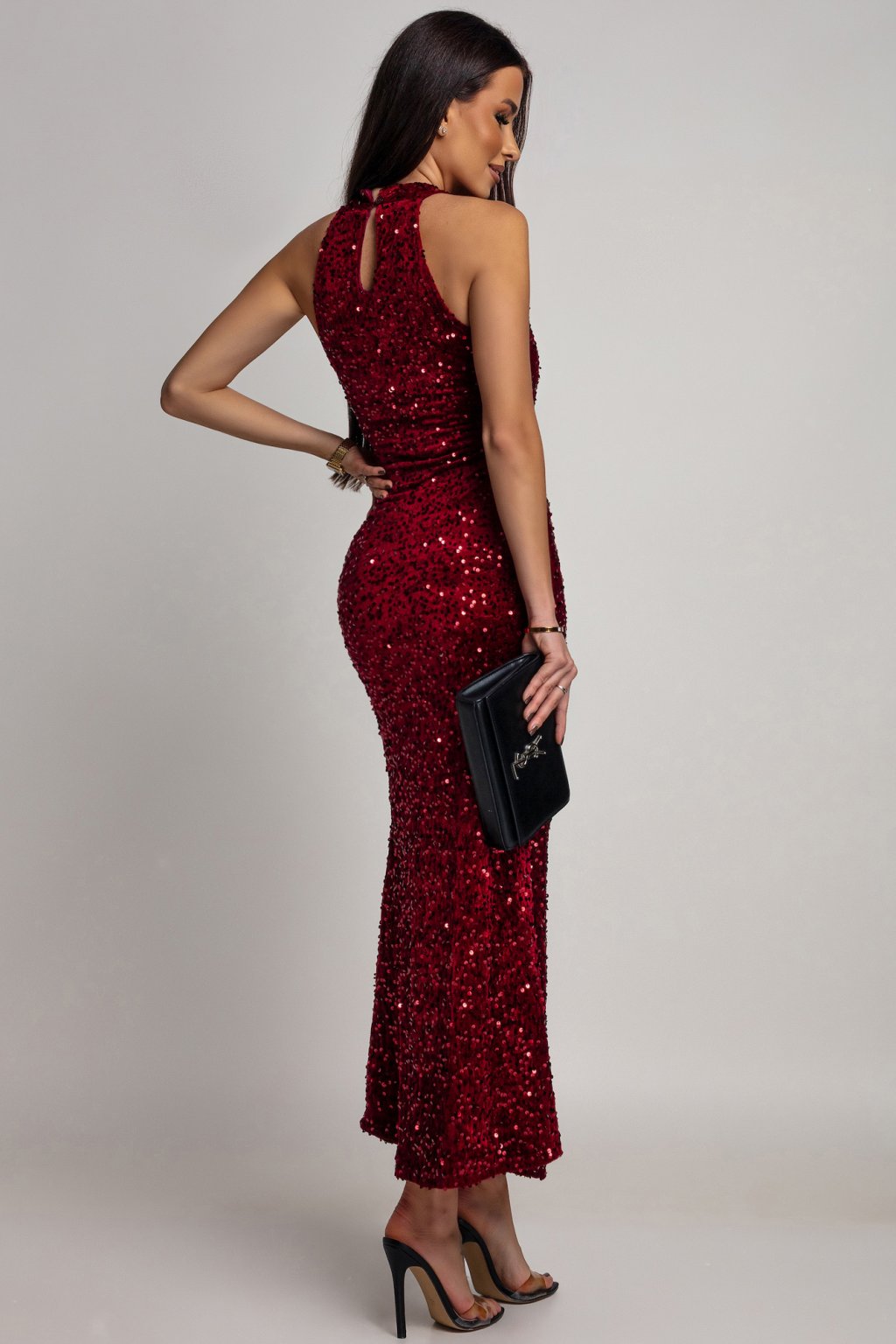 Bordové přiléhavé flitrované šaty