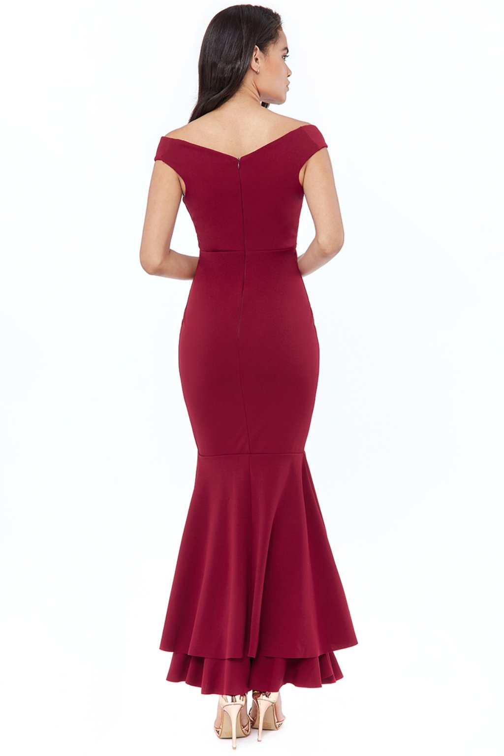 Jednoduchý střih je podtržen volánovou spodní částí ve stylu mořské panny. Šaty krásně vytvarují postavu a vyzvednou ženské křivky na těch správných místech. Materiál je elastický a vzadu se zapínají zipem. P>