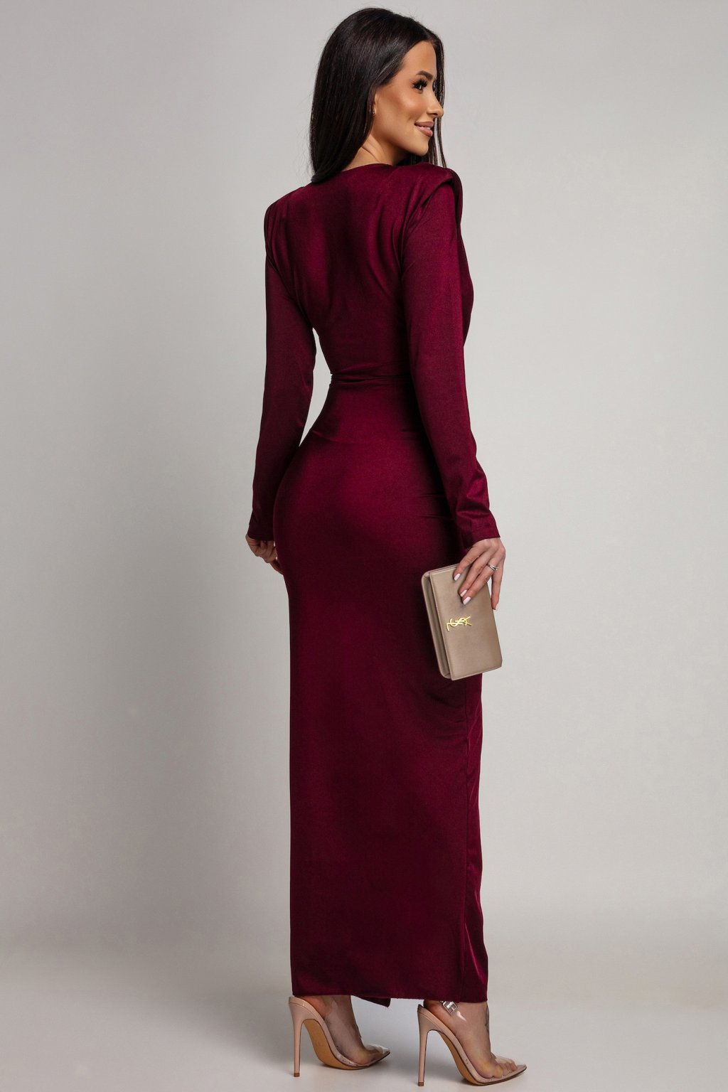 Bordové přiléhavé šaty s hlubokým výstřihem
