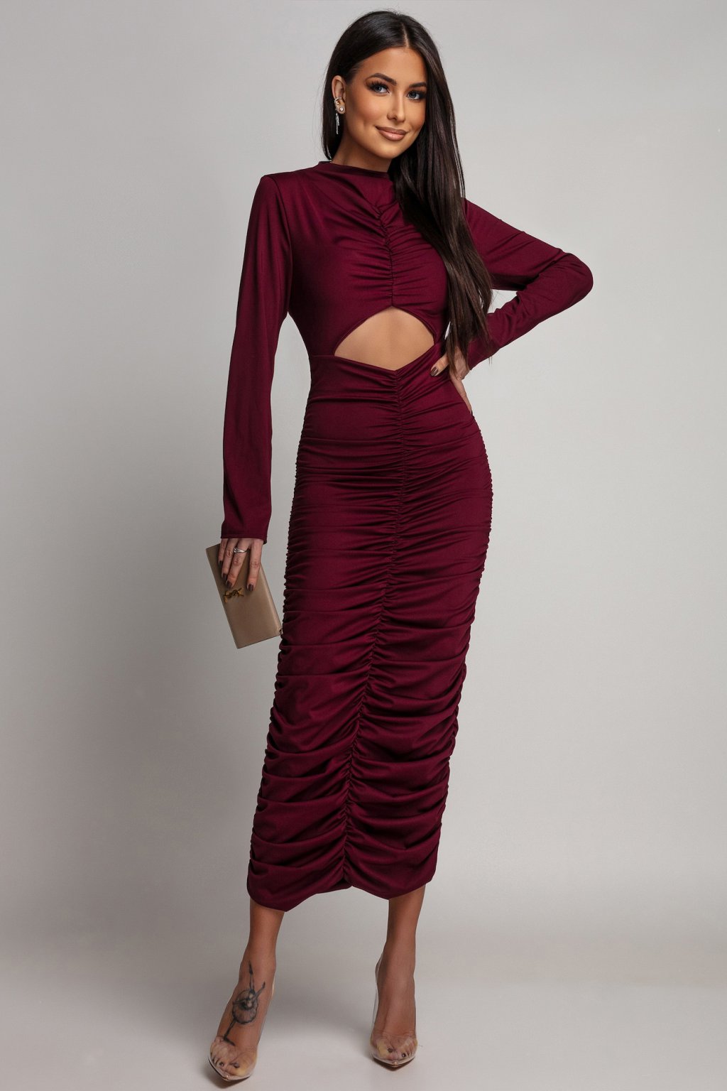 Bordové přiléhavé šaty s řasením