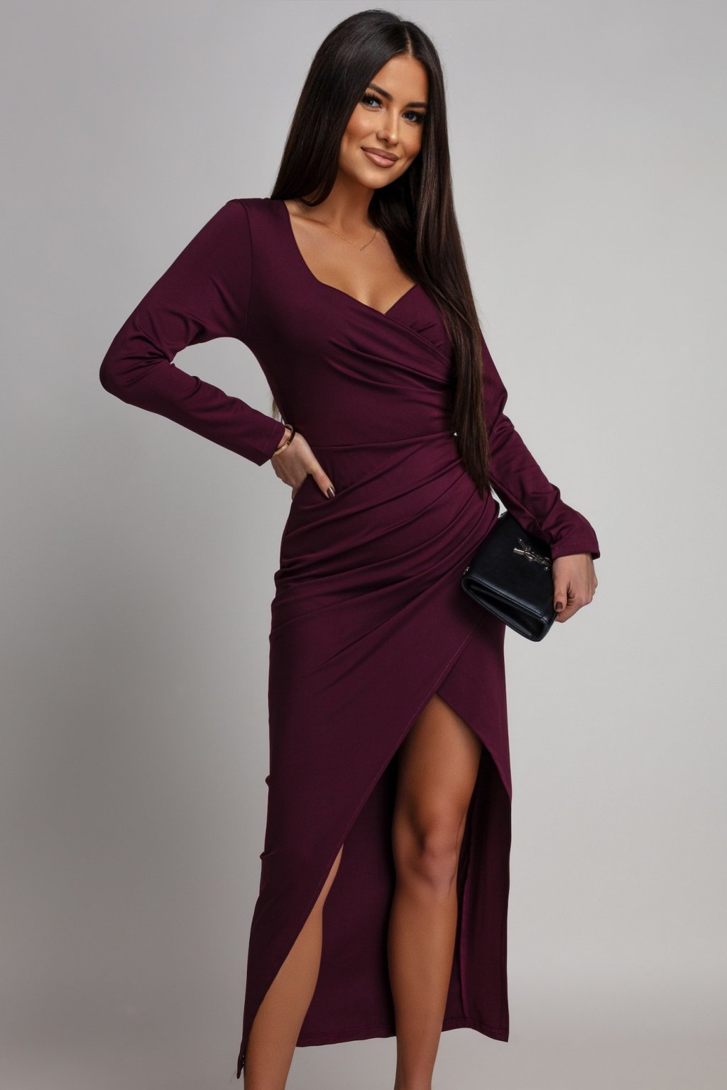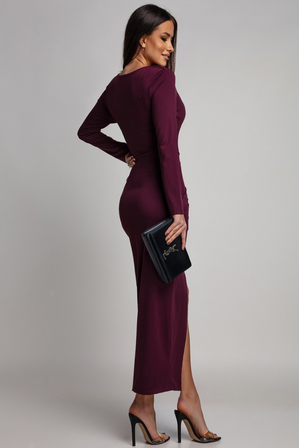 Bordové přiléhavé šaty s rozparkem