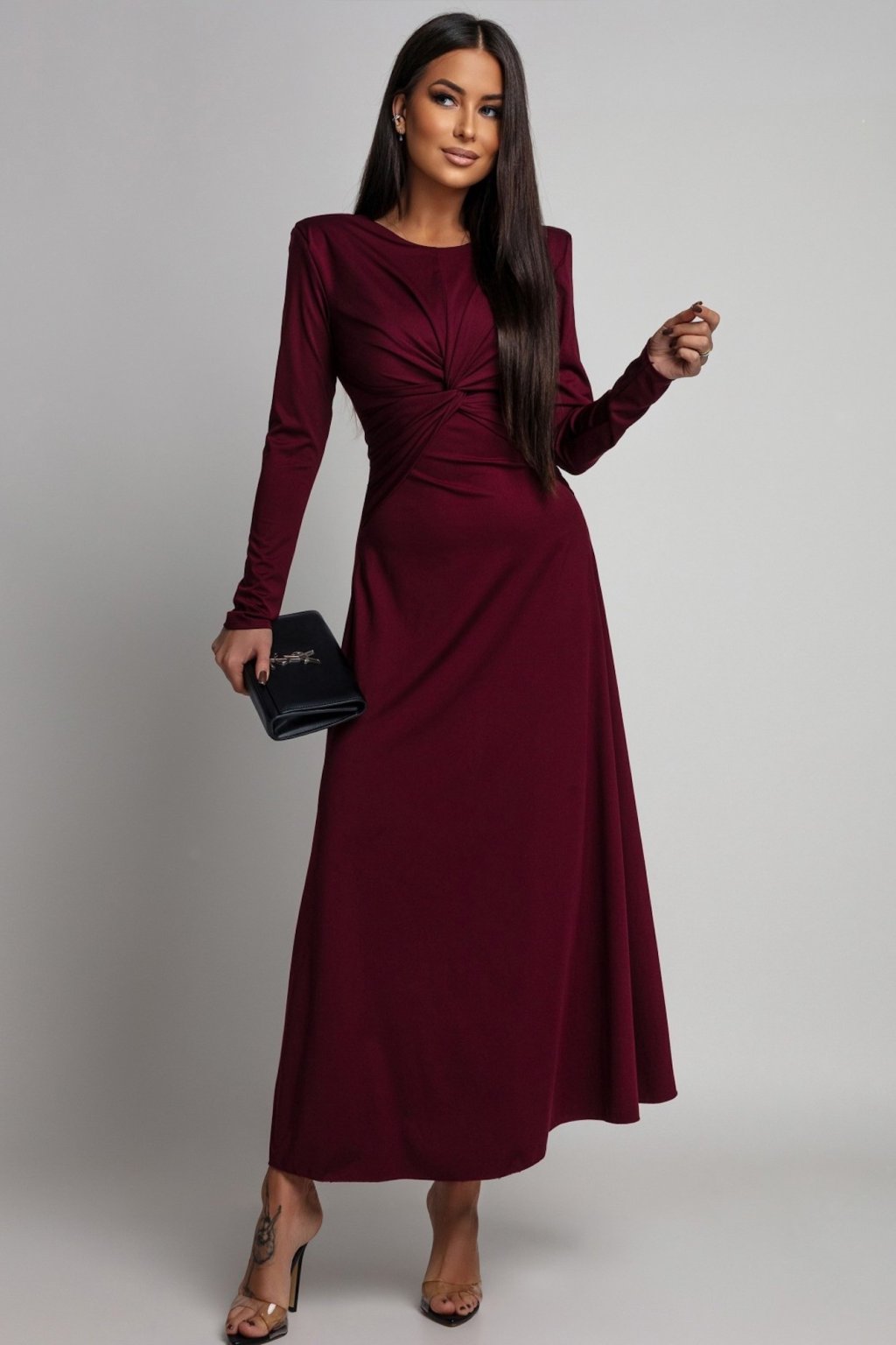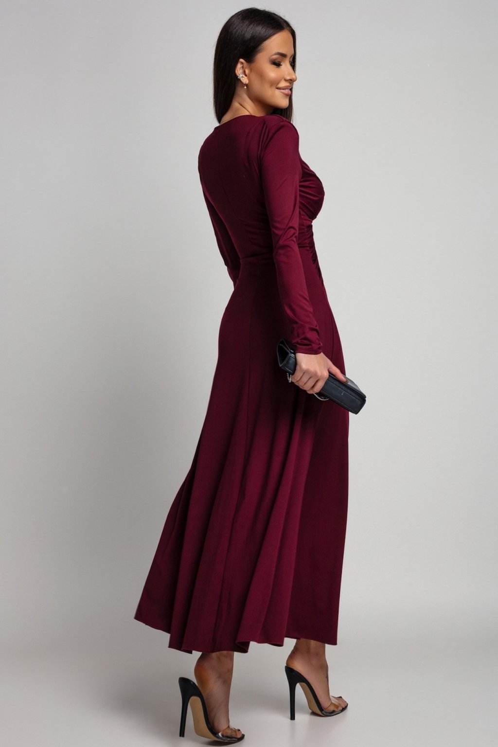 Bordové společenské šaty s áčkovou sukní