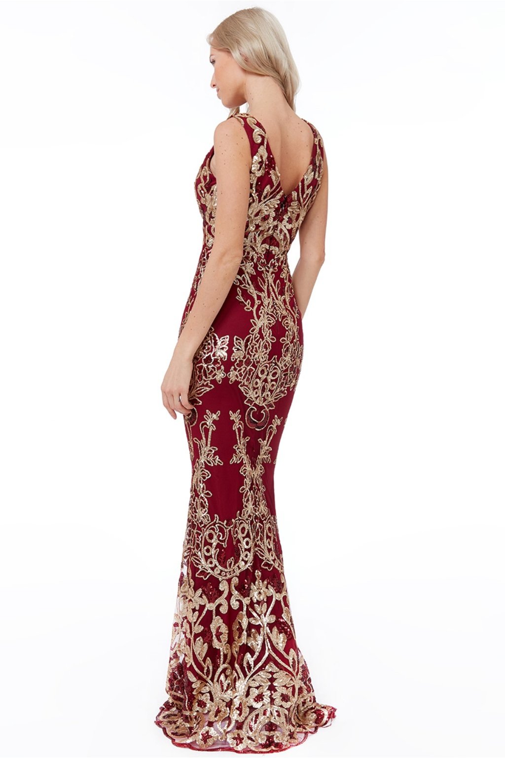 Tyto flitrované šaty potěší dámy, které chtějí na společenské události rozhodně zazářit! Zlaté flitry vyšívané do různých ornamentů krásně podtrhnou a rozjasní ženskou osobnost. Šaty jsou podšité neprůhlednou látkou a vzadu se zapínají zipem.