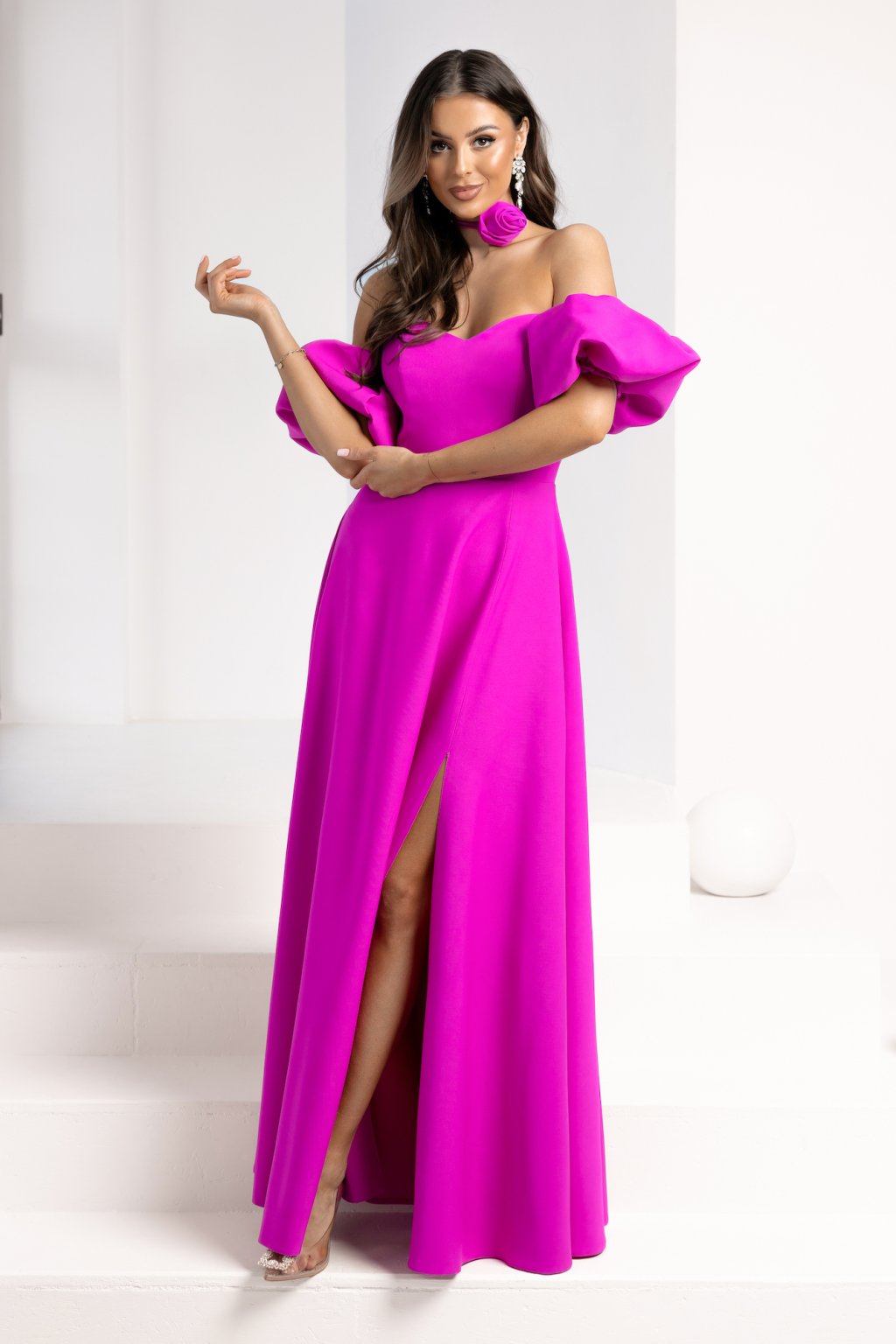 Zažij chvíle jako z pohádky v těchto okouzlujících romantických šatech. Jejich korzetový živůtek elegantně zvýrazní dekolt, zatímco vzdušná sukně s jemným rozparkem dodá vzhledu ladnost a smyslnost. Působivé balonové rukávy dodávají šatům dramatický, ale zároveň ženský nádech. Ideální pro slavnostní příležitosti, plesy, svatby či gala večery – v těchto šatech budeš nepřehlédnutelnou hvězdou každého večera.
