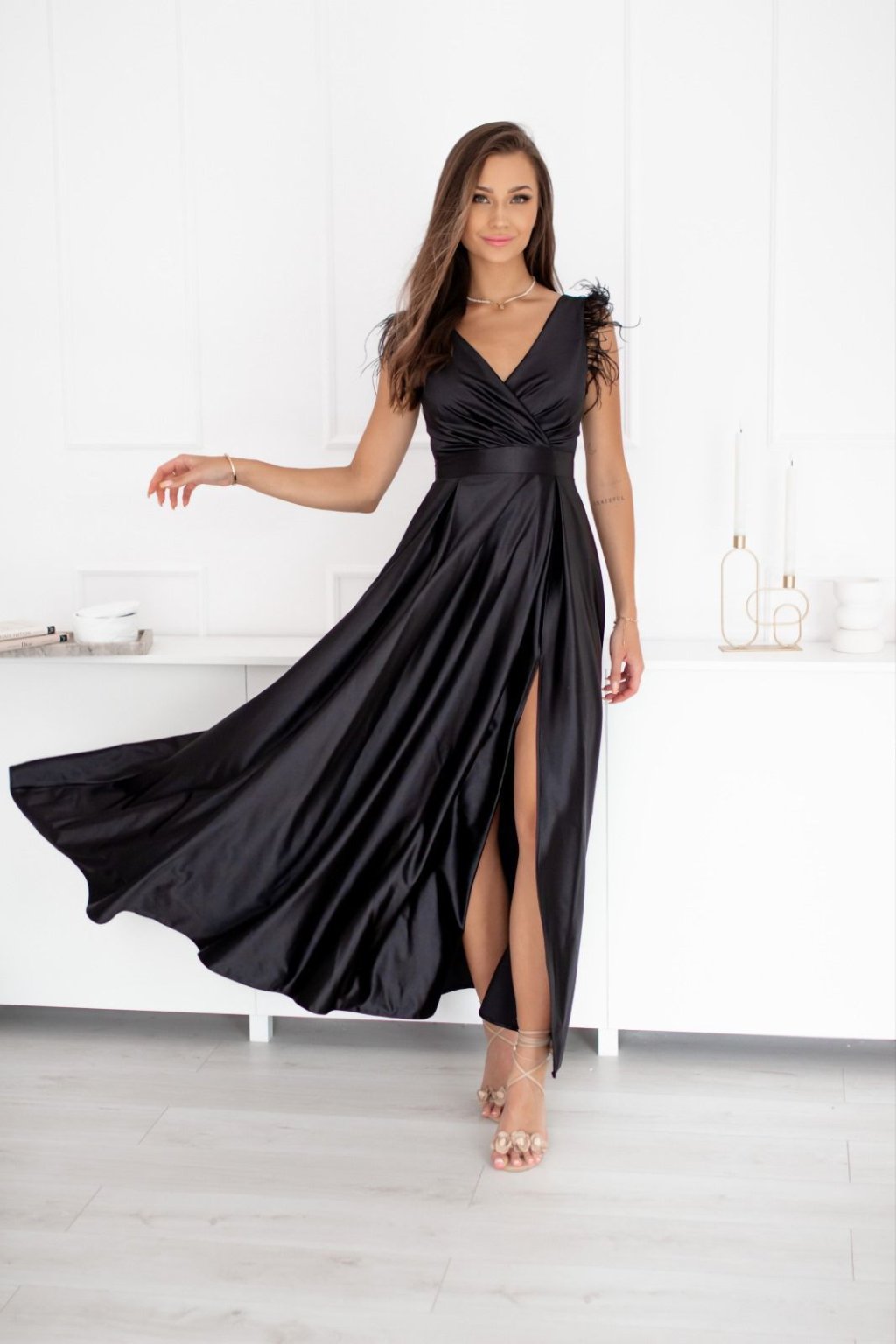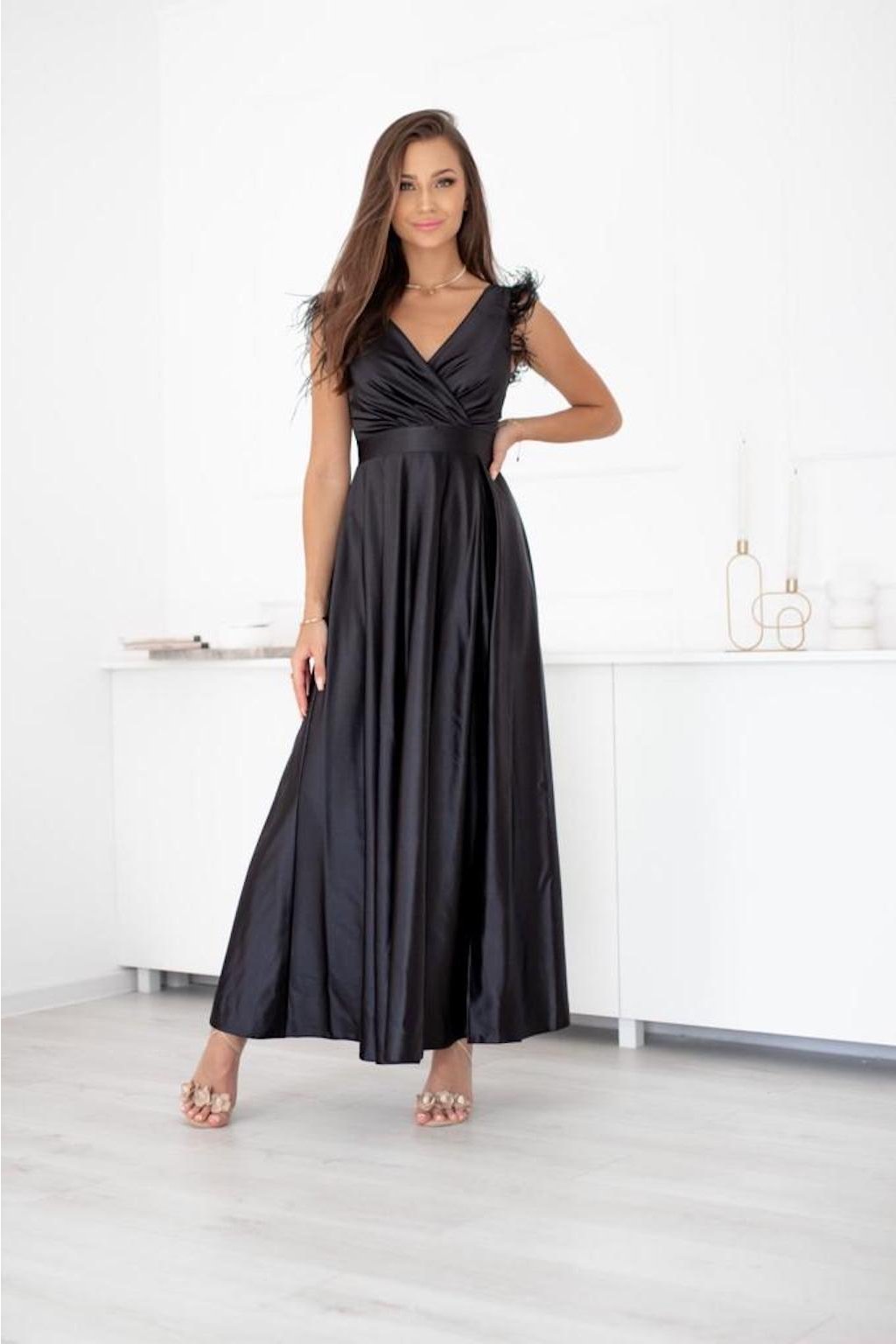 Pro milovnice nápadných kousků jsou tyto šaty jako stvořené. Poutavými je dělají pírka, která zdobí ramena. Vzadu se šaty zapínají zipem a materiál je mírně elastický.