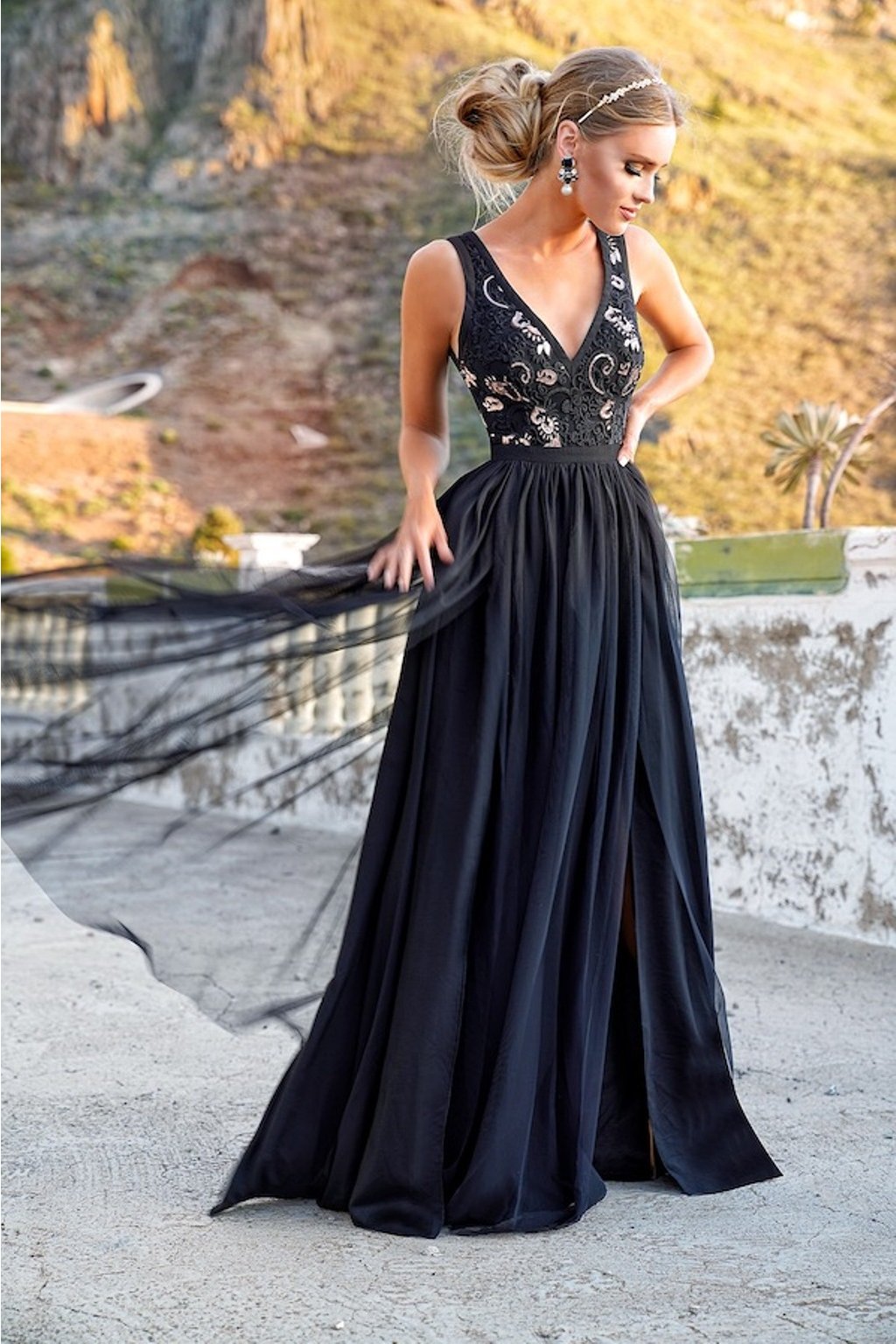 Černé společenské šaty s krajkou