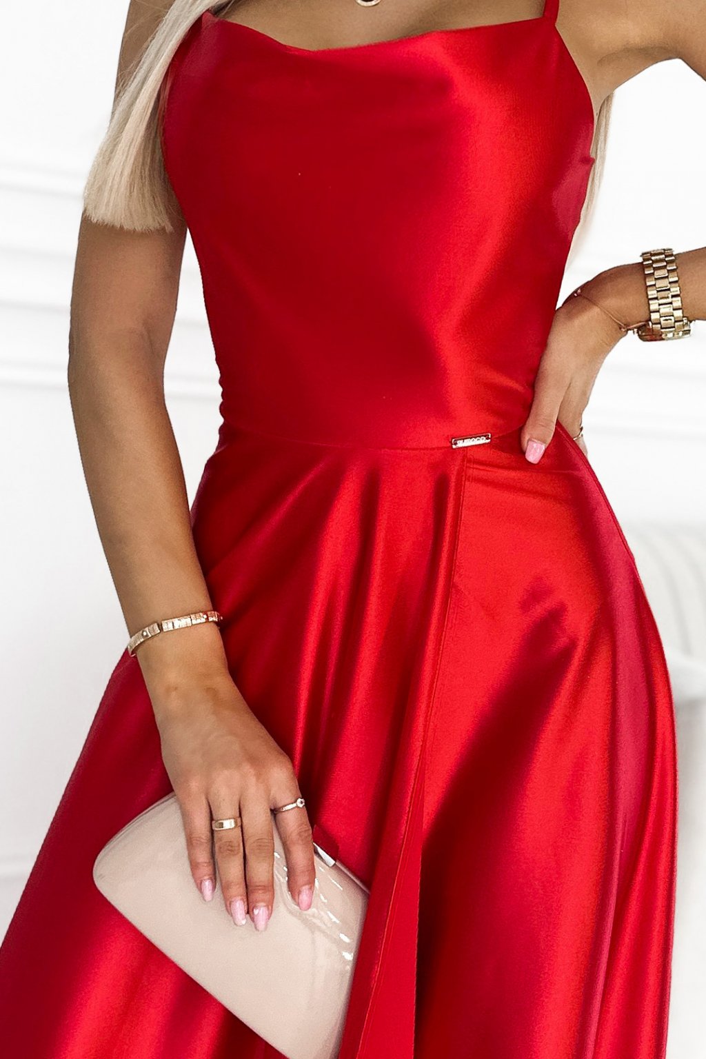 V jednoduchosti je krása a toto nepsané pravidlo zajisté potvrzují i tyto krásné šaty, ve kterých bude váš krok díky rozparku sexy. Materiál šatů je lesklý, mírně elastický a vzadu se zapínají zipem.