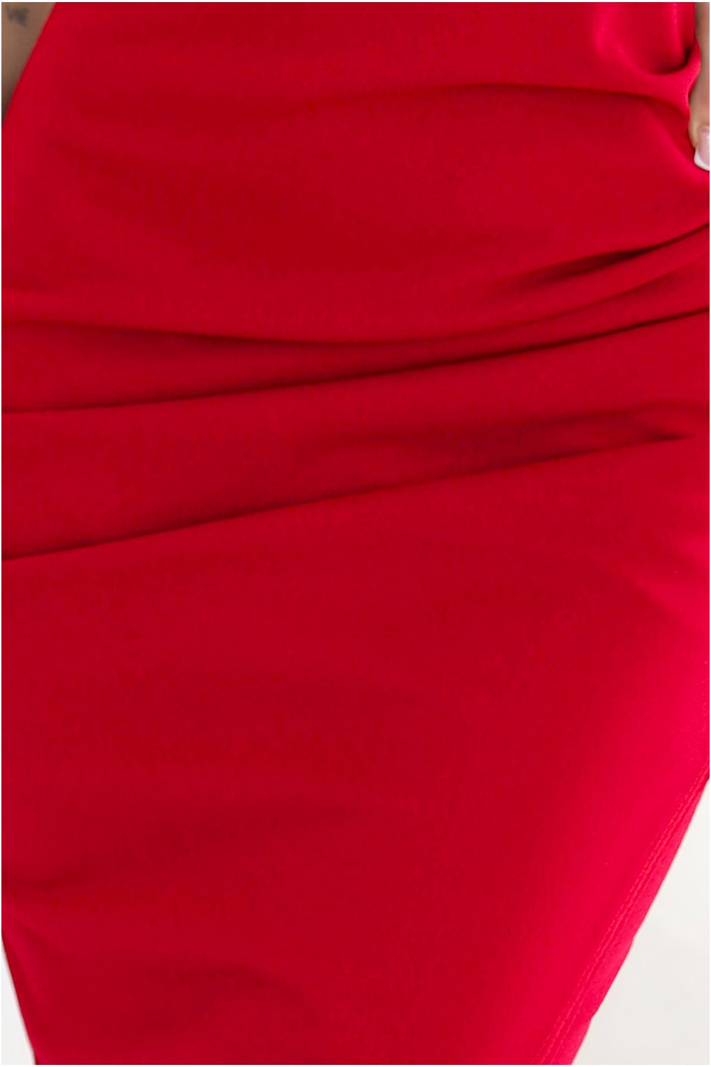 Červené přiléhavé šaty spuštěné na ramena