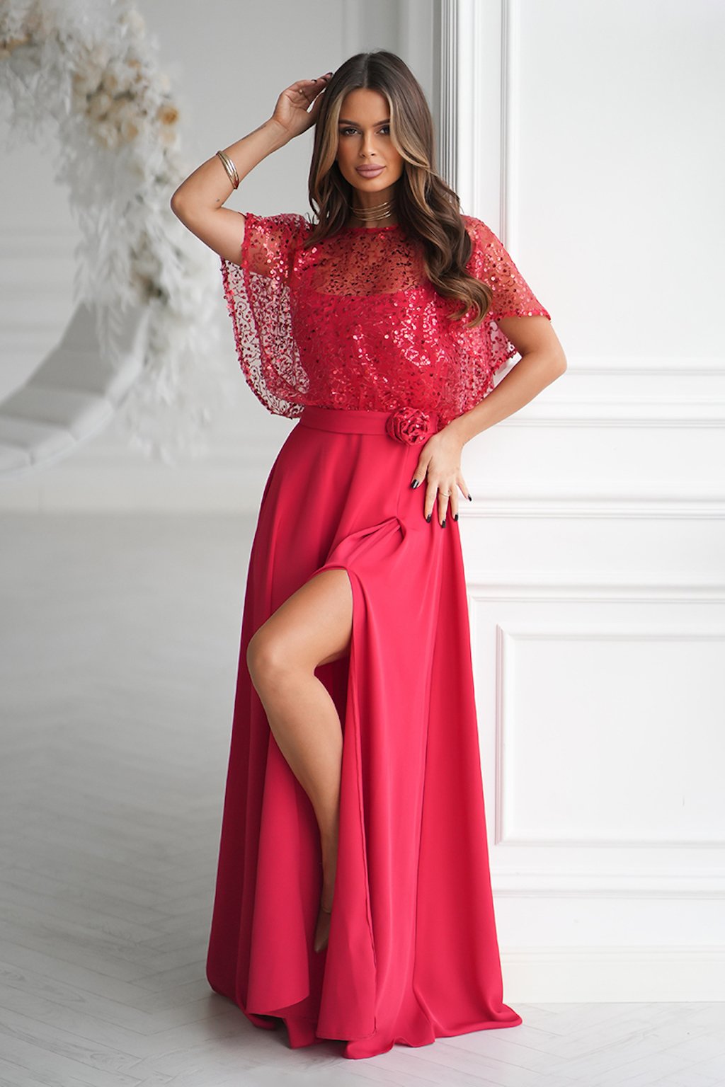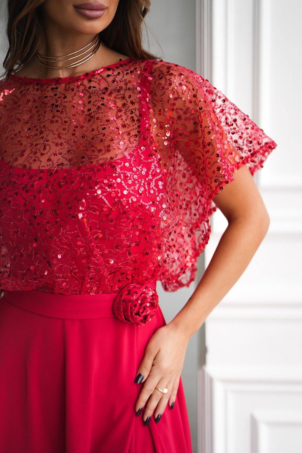 Červené společenské šaty s flitry