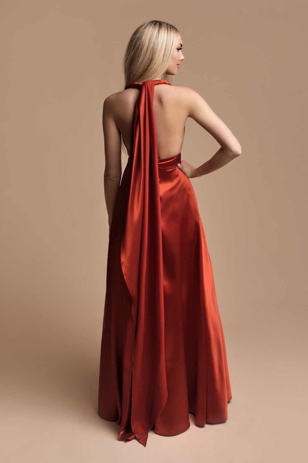 Odhalená záda jsou vždy zárukou podmanivého vzhledu a jinak to nebude ani při těchto šatech. Se špetkou nápaditosti si šaty můžete jakkoli uvázat. Na sukni se zapínají zipem.