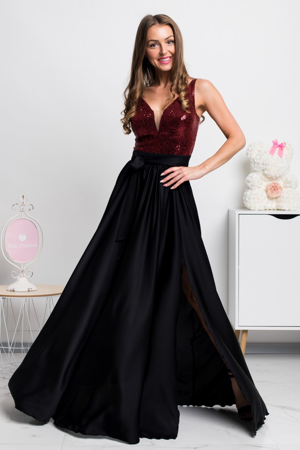 Tento dokonalý kousek přímo dýchá luxusem. Díky flitry v poutavé barvě budete nepřehlédnutelná a volná saténová sukně doplněna rafinovaným rozparkem za sebou zanechá velkou dávku noblesy. Vzadu se šaty zapínají zipem a ramínka jsou nastavitelná.