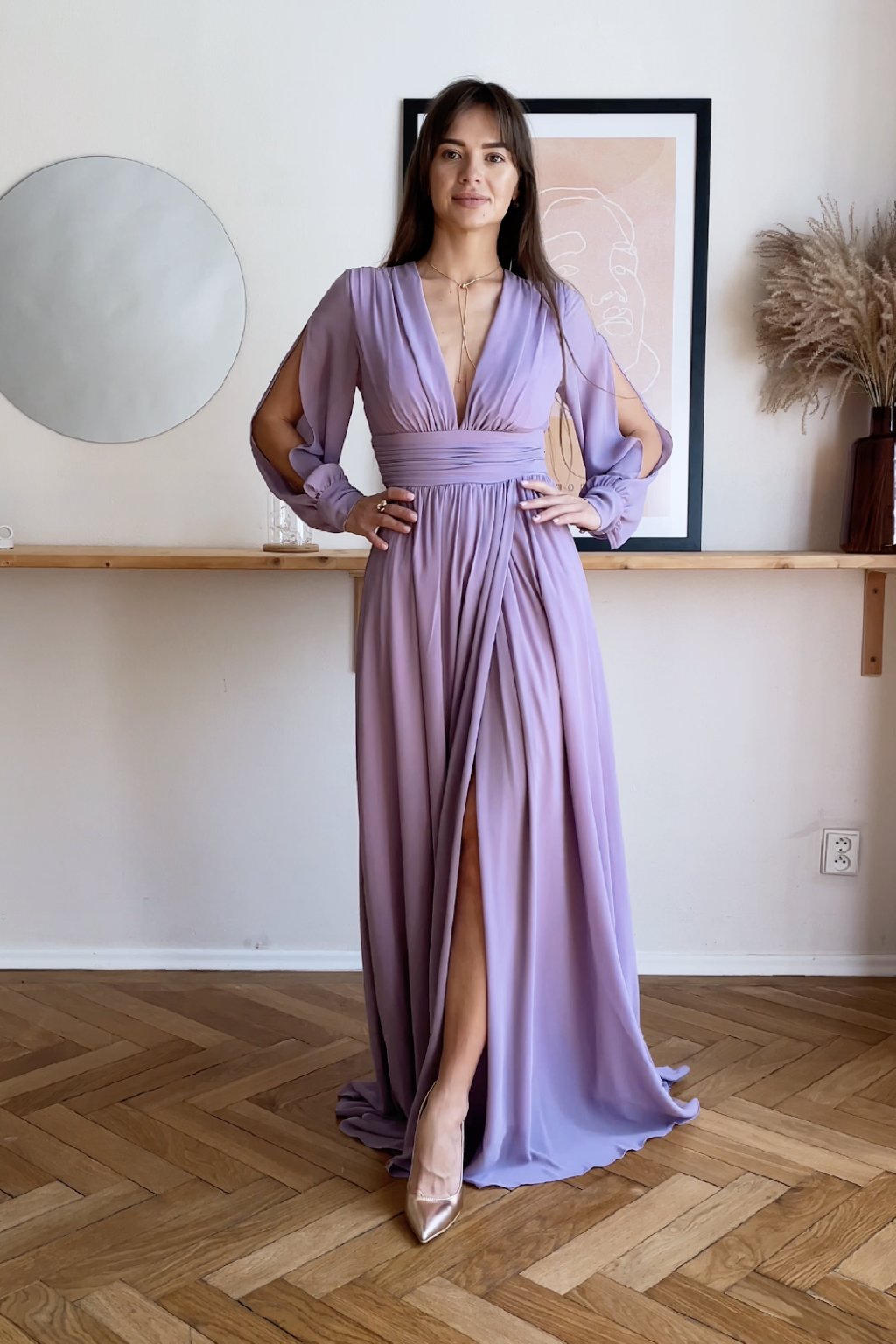 Tyto krásky jsou jednoduše neodolatelné. I přes dlouhé rukávy se v nich budete cítit pohodlně díky lehkému šifonovému materiálu a odhalená záda už jen přispěje k přímo dokonalému vzhledu. Materiál šatů není elastický, vzadu se zapínají zipem a na prsou jsou vyztužené.