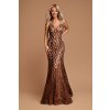 Tyto flitrované šaty potěší dámy, které chtějí na společenské události rozhodně zazářit! Šaty mají záda zdobená šněrováním a na prsou jsou vyztužené. Třpytky nejsou všity do materiálu, přirozeně opadávají.