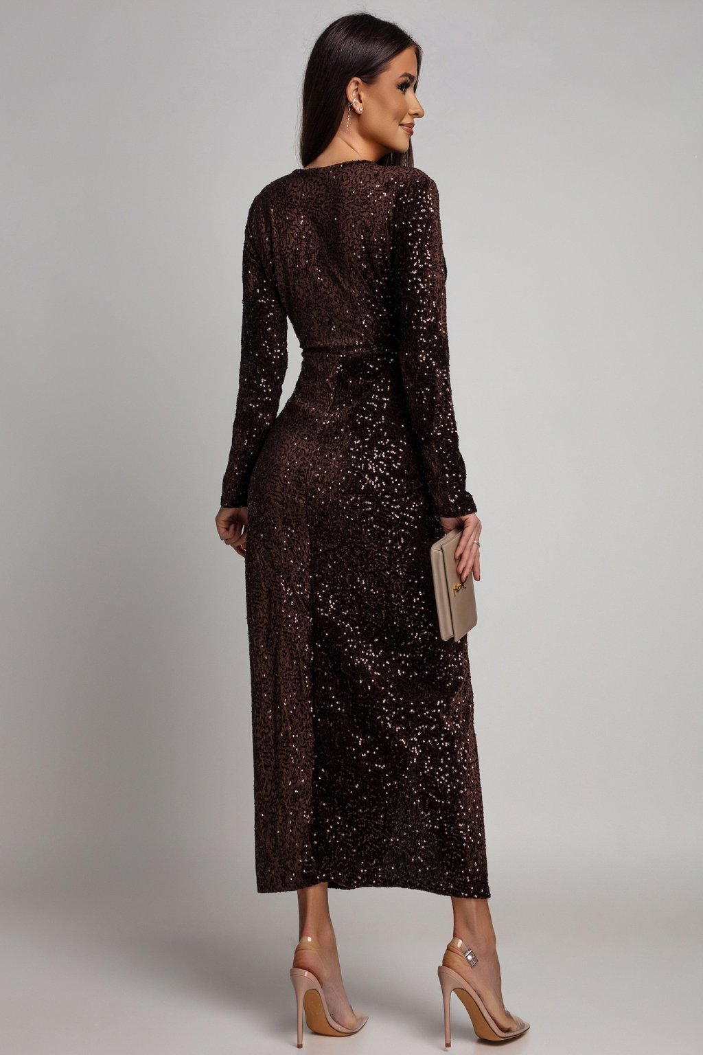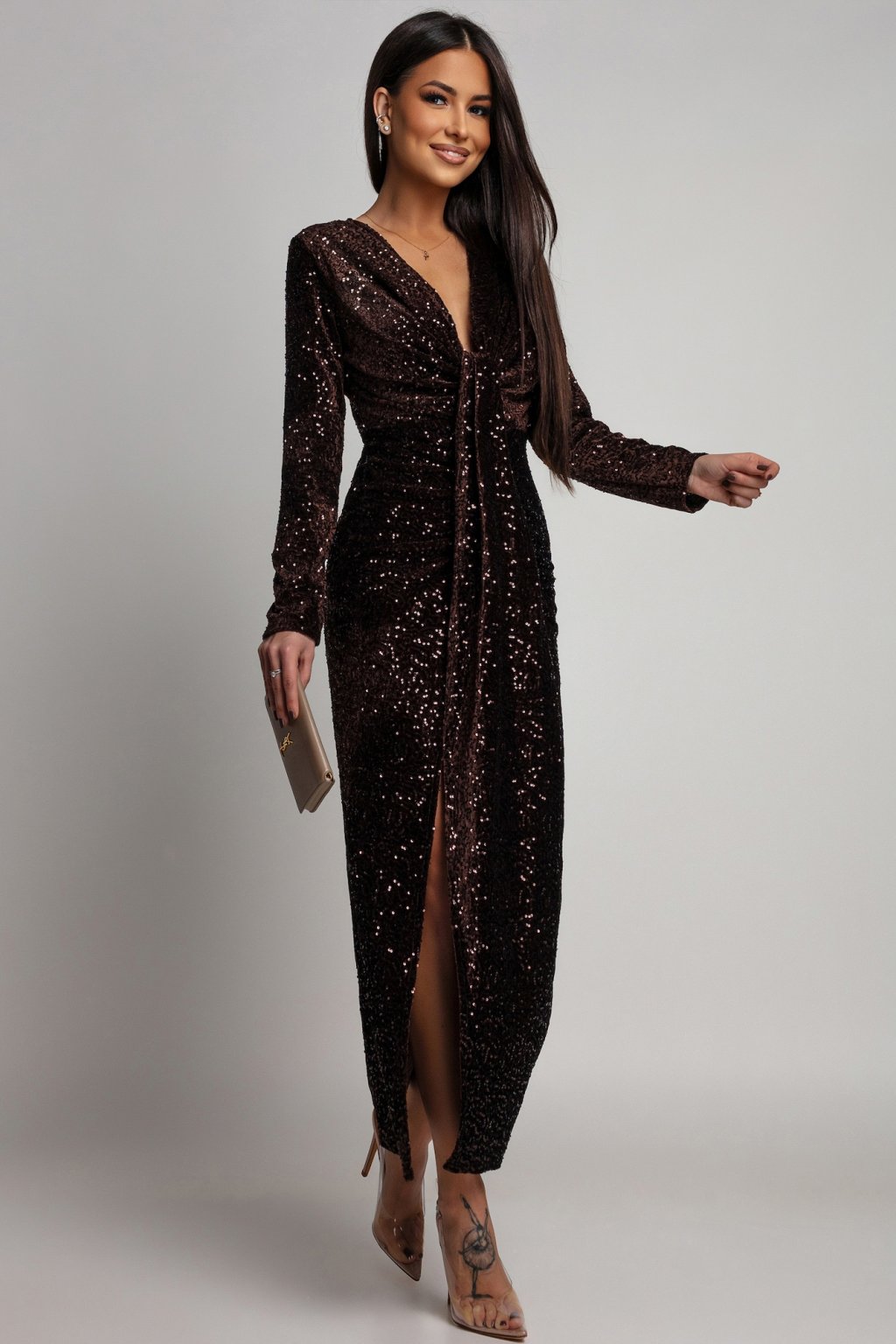 Hnedé flitrované šaty s rozparkom (Velikost UNI)
