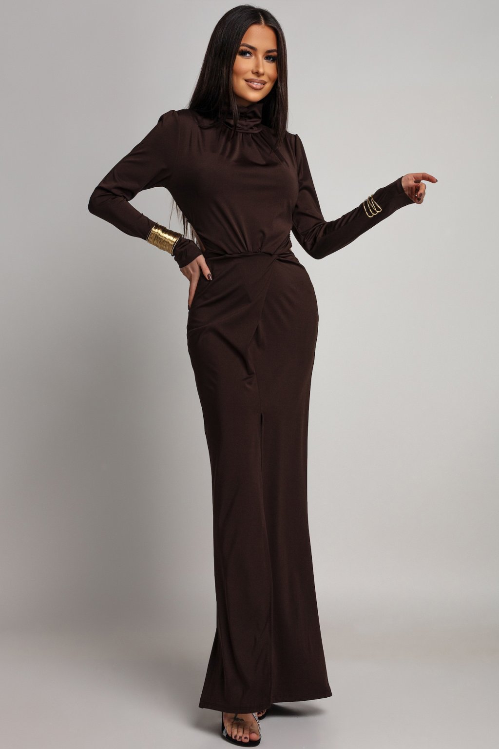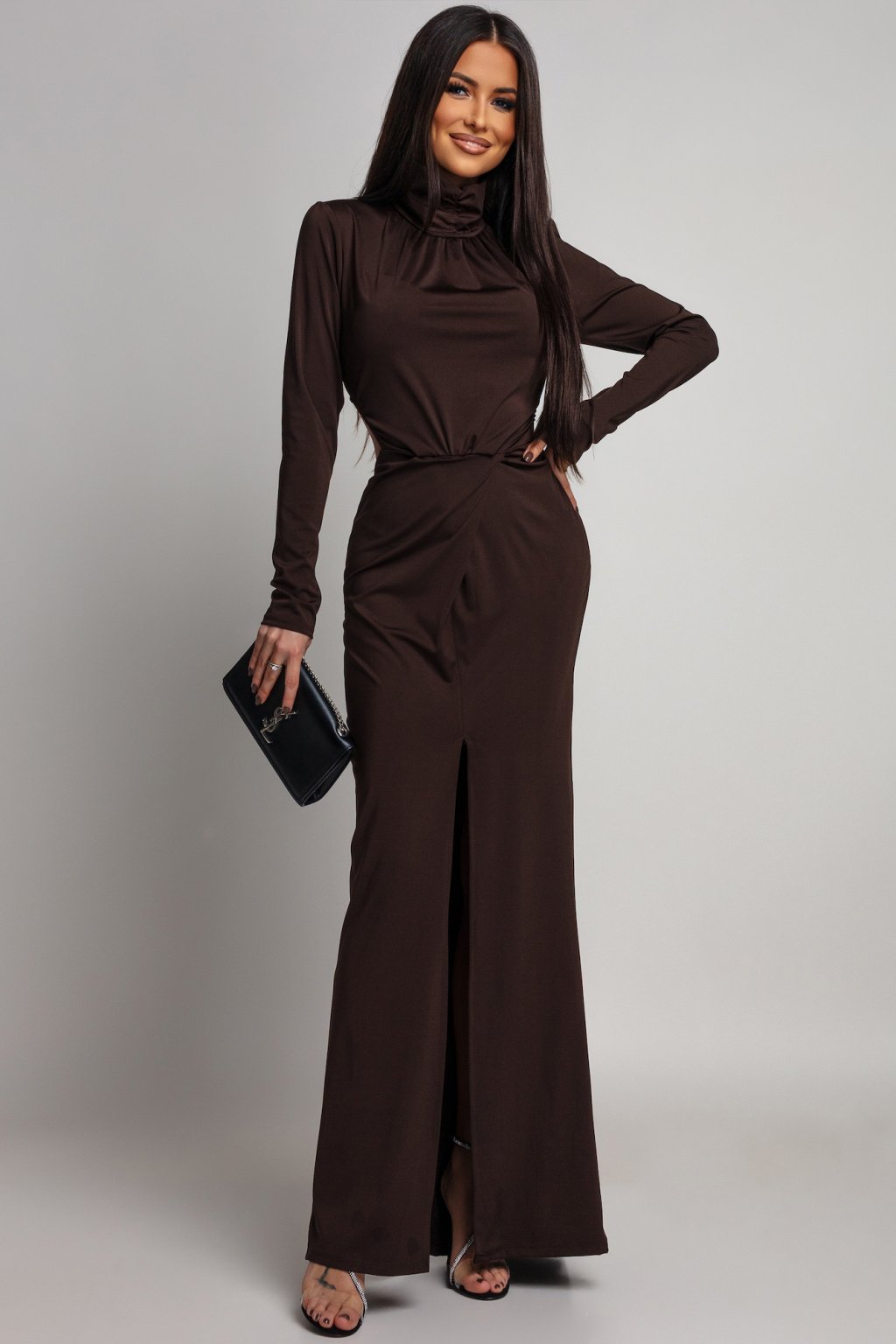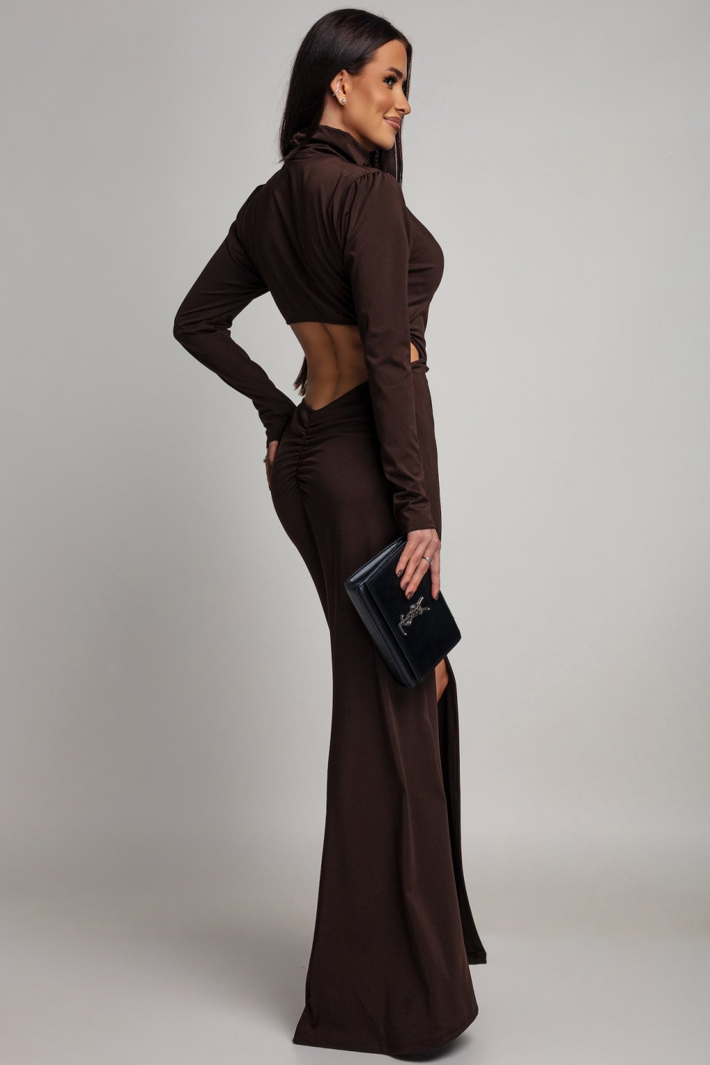 Hnědé přiléhavé šaty s odhalenými zády