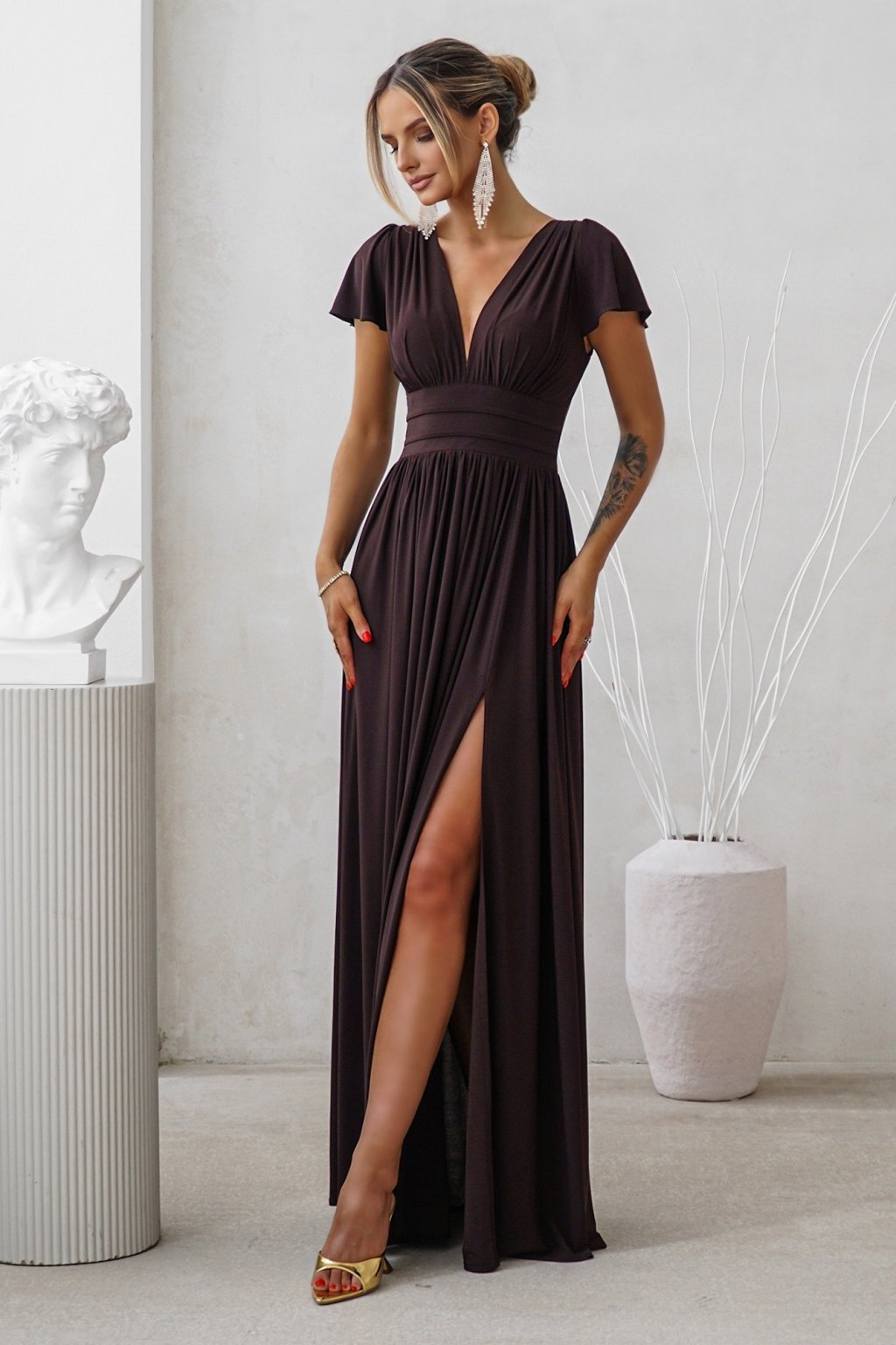 Jednoduché a zároveň sexy! V těchto krásných společenských šatech nepochybně zazáříte! Lehký padavý materiál vám zajistí pohodlí po celou noc. Vzadu se zapínají zipem.