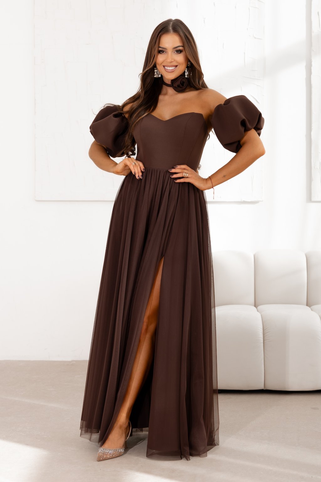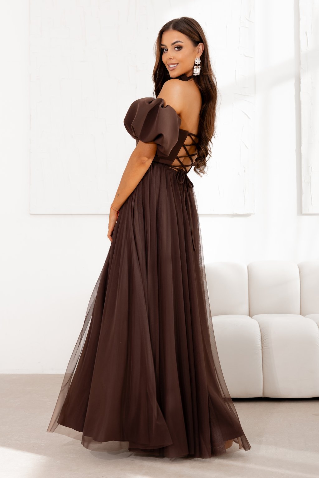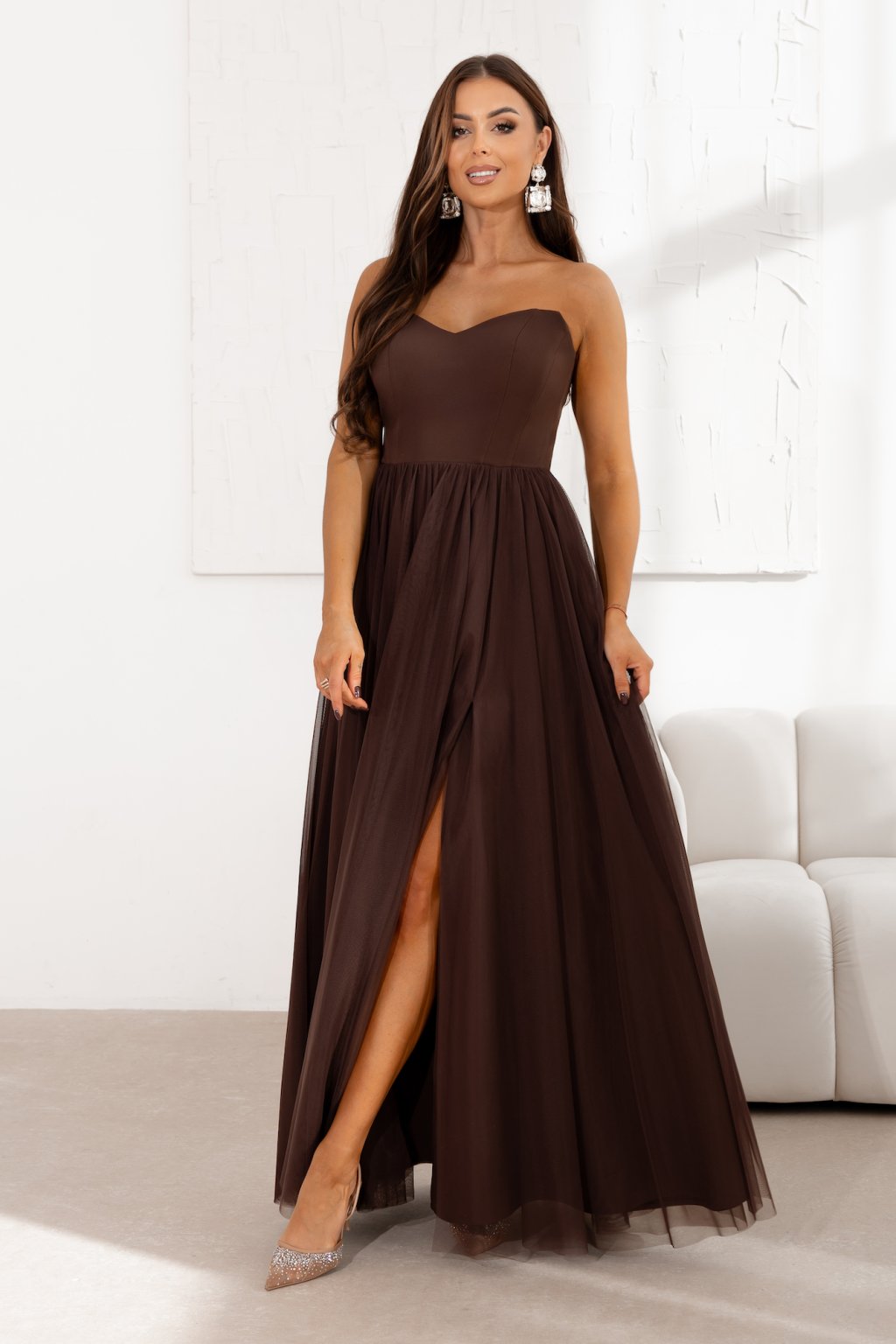 Tento model je ztělesněním precizně propracovaného luxusu. Tyl se rozprostírá v nádherných, vzdušných vrstvách, díky kterým šaty působí jako z červeného koberce. Jednoduše nezaměnitelné, odvážné a naprosto nepřehlédnutelné. Vzadu se šaty zapínají zipem.