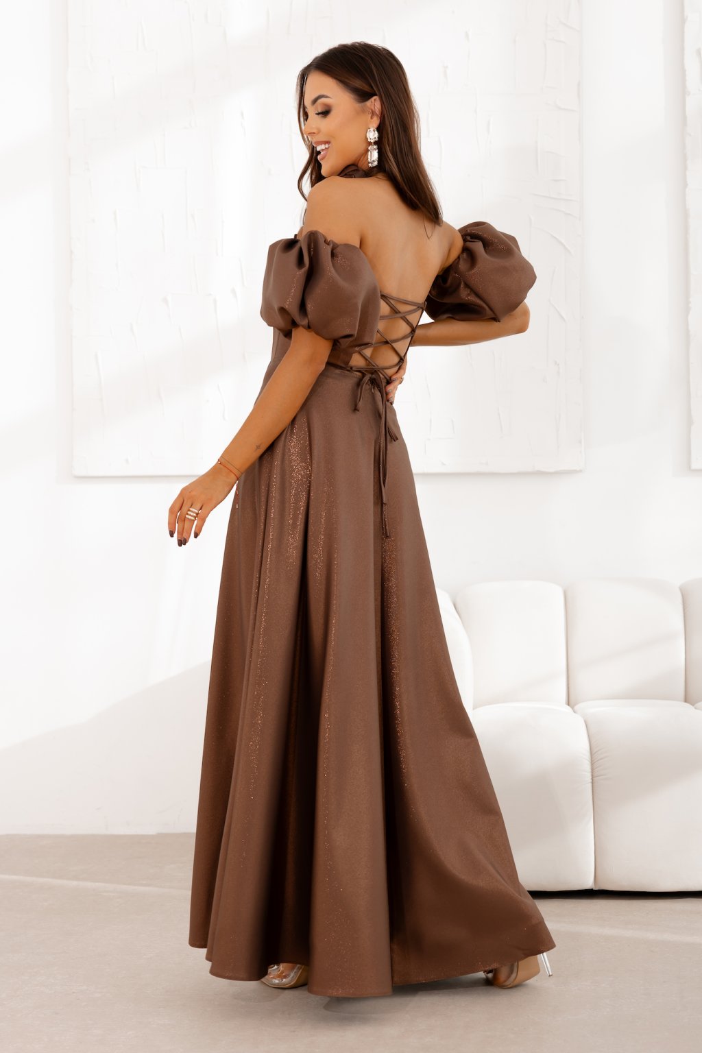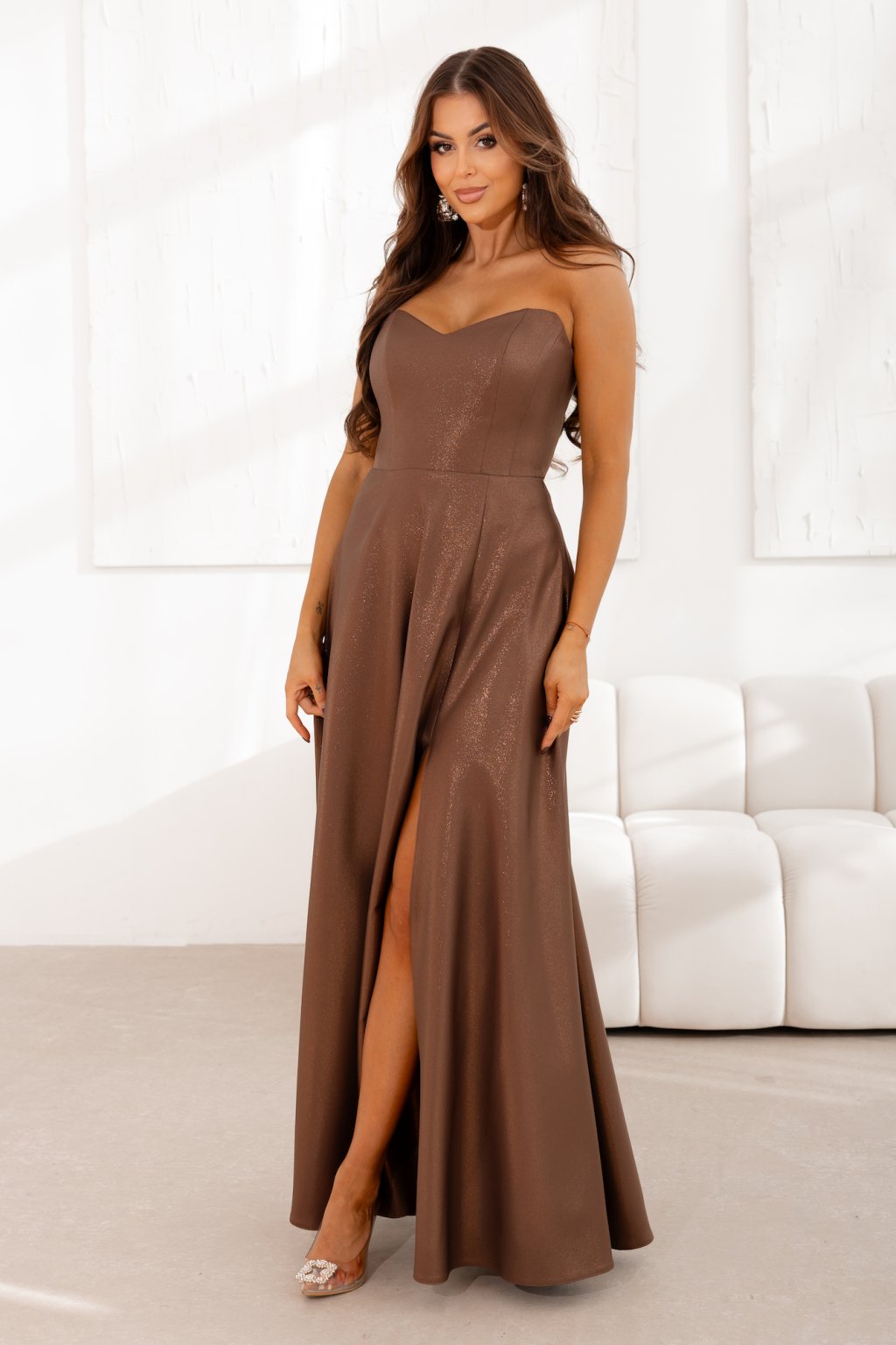 Hnedé trblietavé šaty s rozparkom (Velikost L)