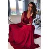Malinové společenské šaty s krajkou a saténovou sukní