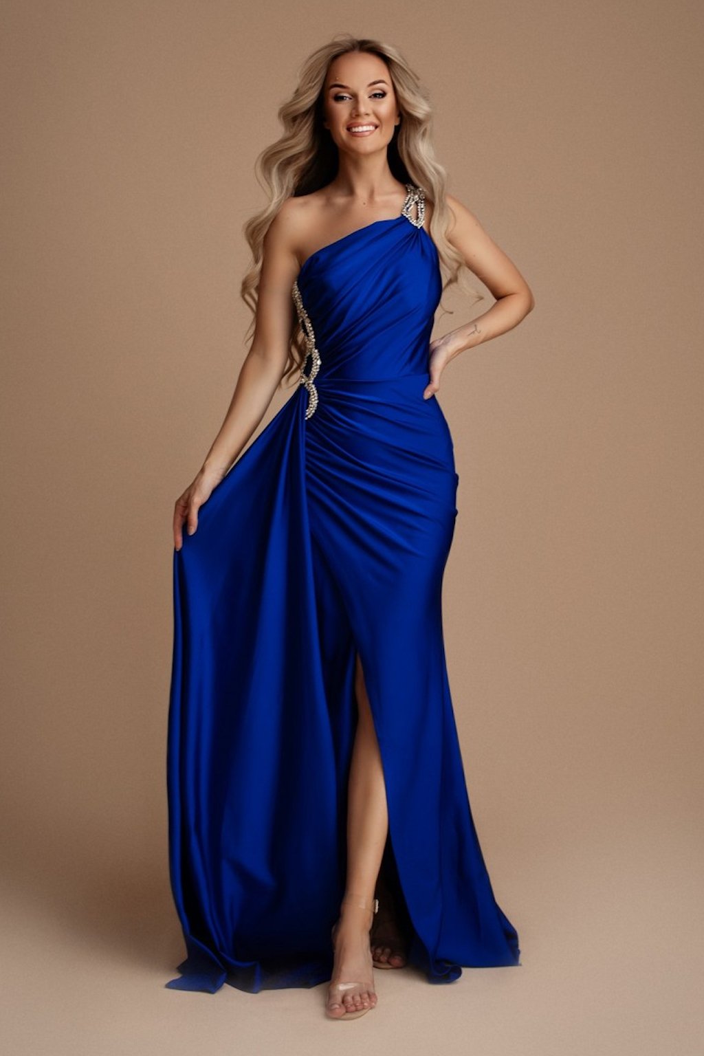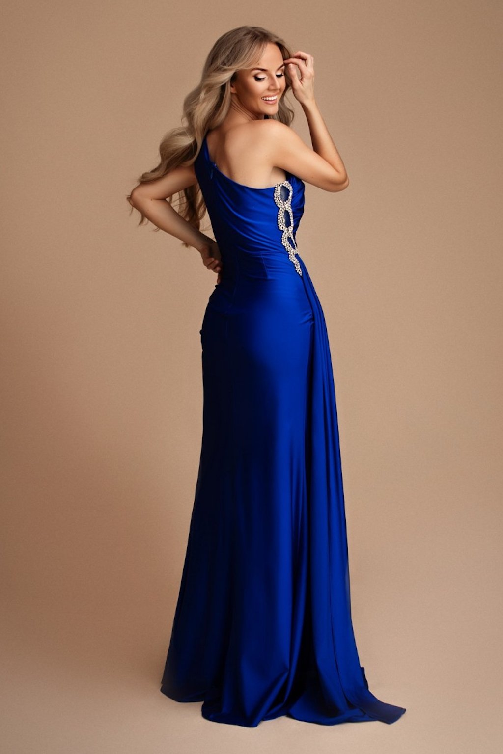 Neobyčejné, poutavé, elegantní a zároveň sexy. Jednoduše neodolatelné. Stříbrné aplikace vyplněné lesklými kamínky rozzáří celou místnost. Materiál šatů je elastický, vzadu se zapínají zipem a na prsou jsou vyztužené.