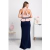 Modro-pudrové společenské šaty s peplum volánkem