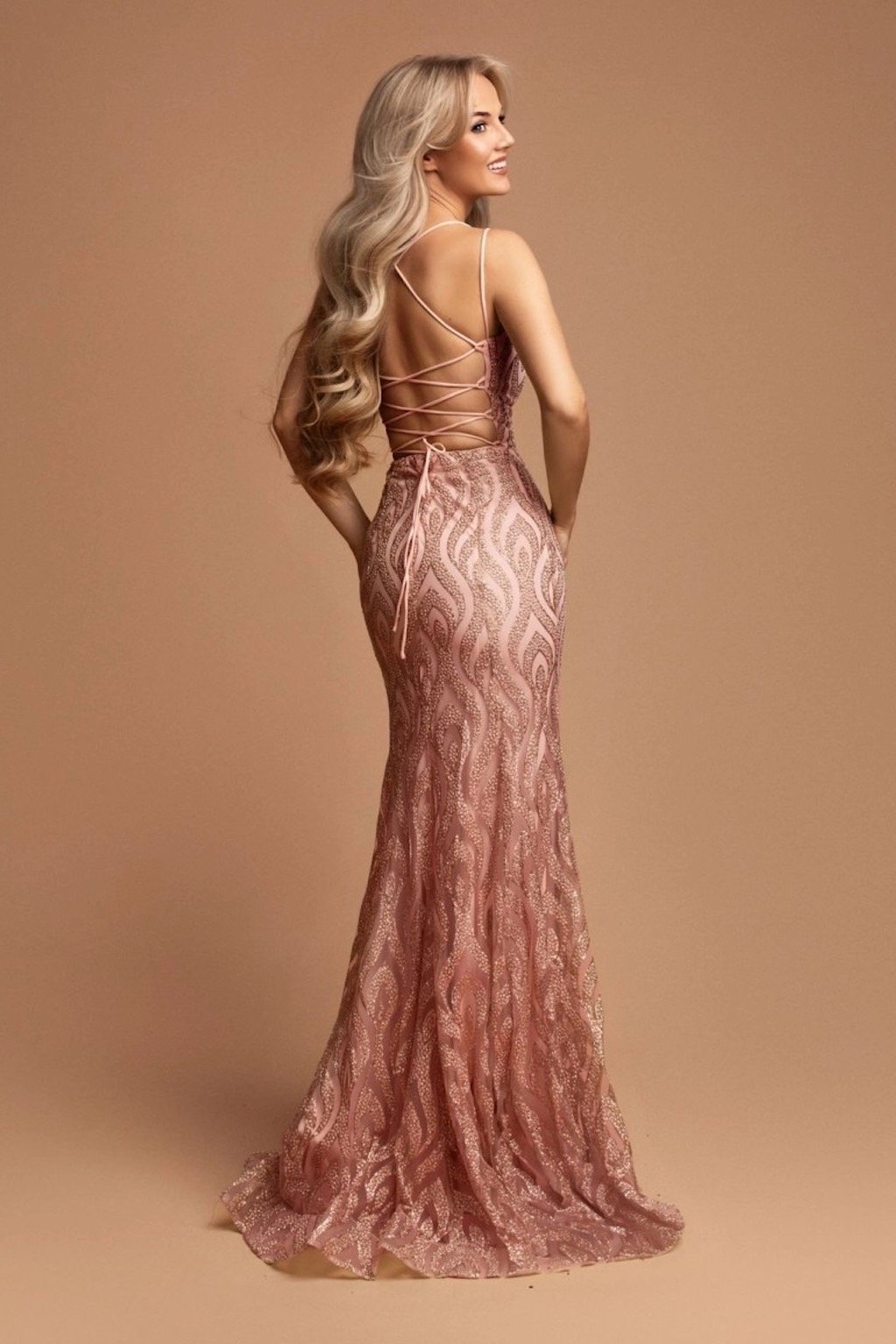 Tyto flitrované šaty potěší dámy, které chtějí na společenské události rozhodně zazářit! Šaty mají záda zdobená šněrováním a na prsou jsou vyztužené. Třpytky nejsou všity do materiálu, přirozeně opadávají.