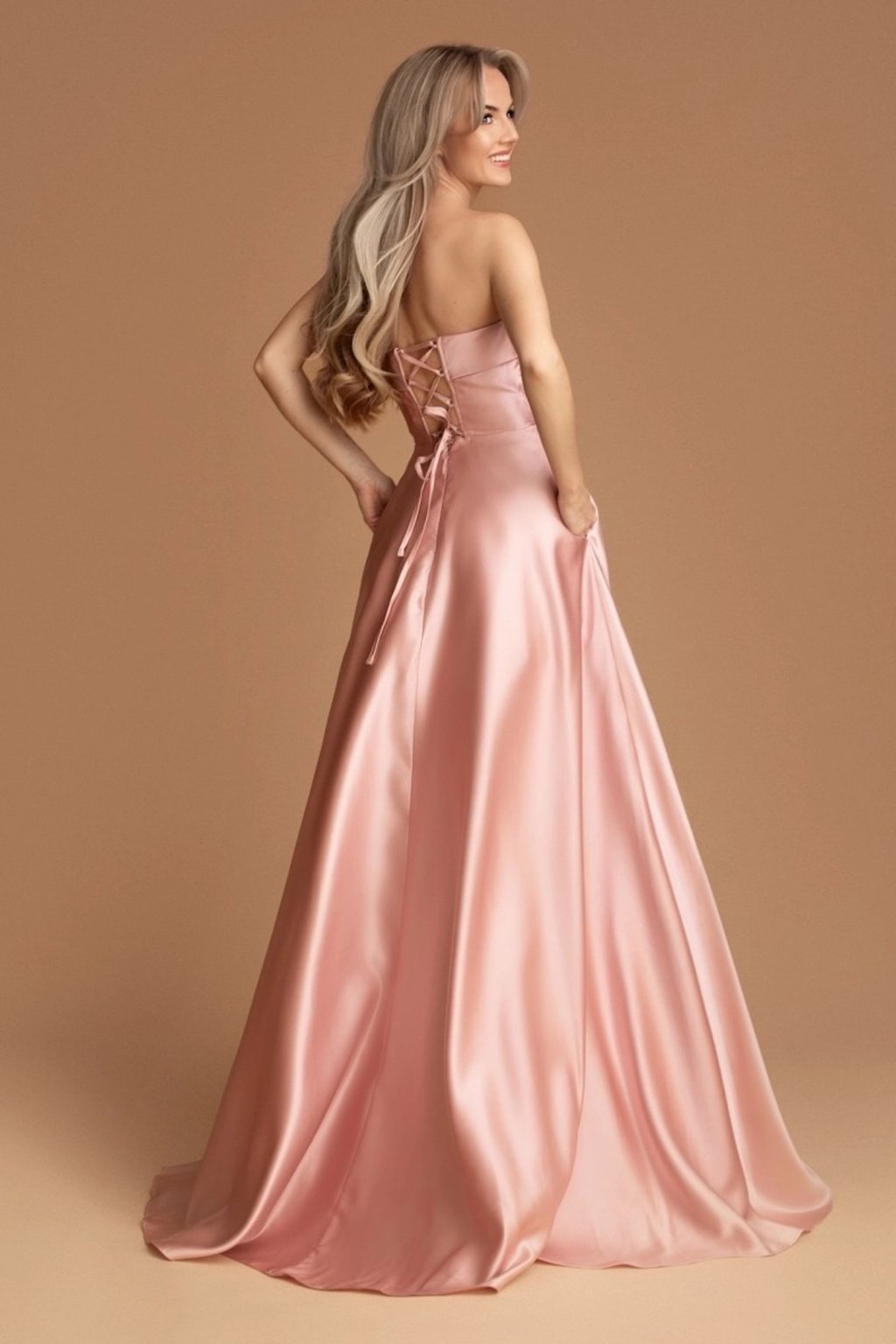 Jako stvořené pro večer plný tajemství a něžných pohledů, tyto šaty v sobě nesou jemnost pohádky a eleganci. Každý krok v nich připomíná tanec mezi hvězdami – lehký, snový a nezapomenutelný. Ideální pro ženu, která touží nejen zaujmout, ale také zanechat dojem, který přetrvá v srdcích. Šaty mají na zádech šněrování, na sukni se zapínají zipem a na prsou jsou vyztužené. Součástí šatů jsou odnímatelná ramínka.