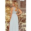 Šedé společenské šaty s krajkou a výřezem na zádech