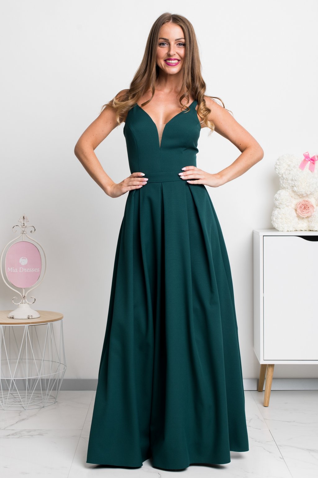 Smaragdové dlouhé společenské šaty