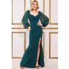 Smaragdové přiléhavé šaty s balonovými rukávy