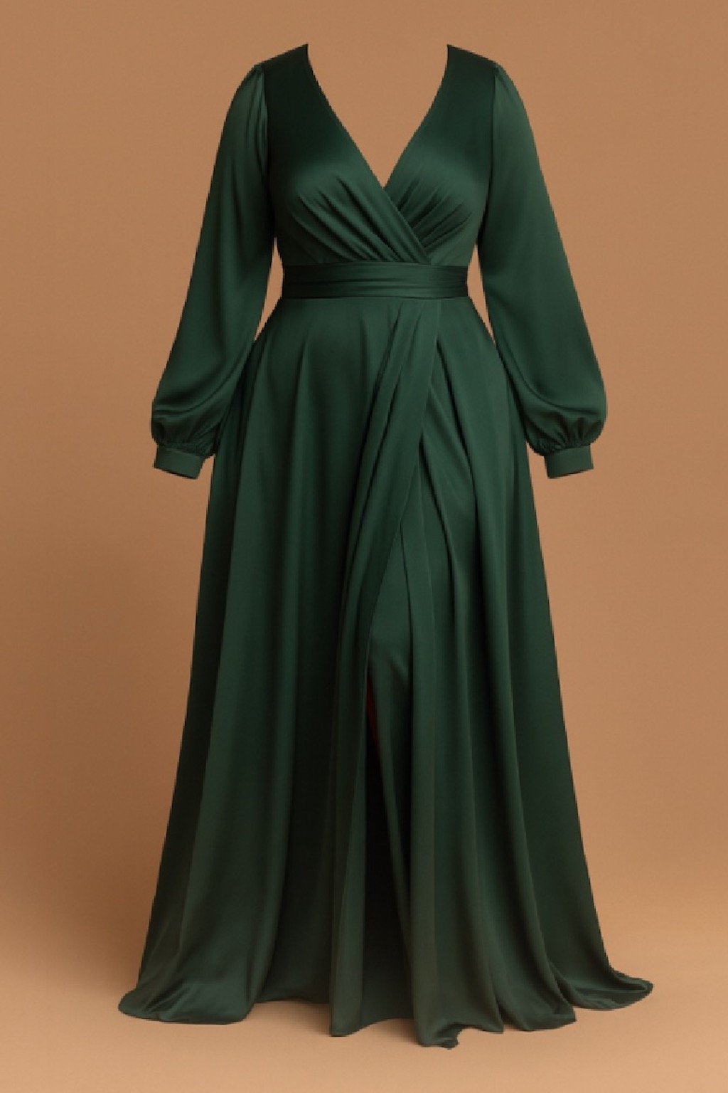 Smaragdové saténové šaty s rozparkom (Velikost 4XL)