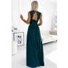 Smaragdové společenské šaty s krajkou a výřezem na zádech