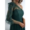 V těchto šatech zajisté učarujete každému pohledu. Výrazný týlní rukáv, nepřehlédnutelné třpytky a rozparek se postarají o elegantní, noblesní a smyslný vzhled. Šaty se na boční straně zapínají zipem. Třpytky nejsou všity do materiálu, přirozeně mírně opadávají.
