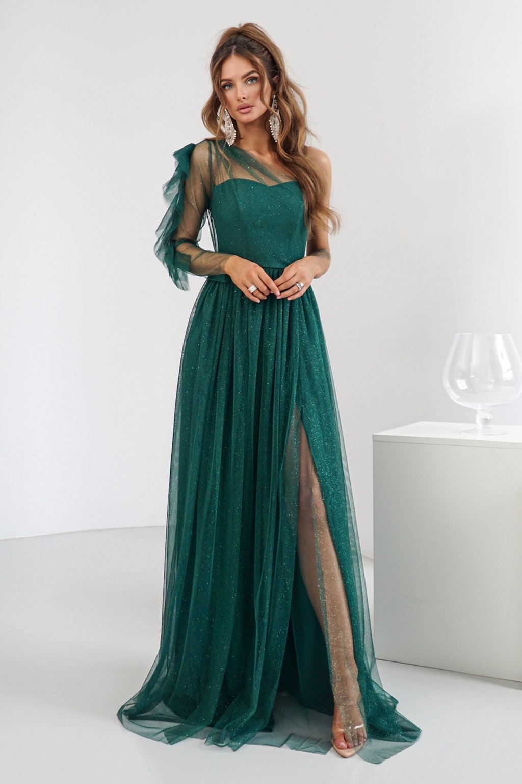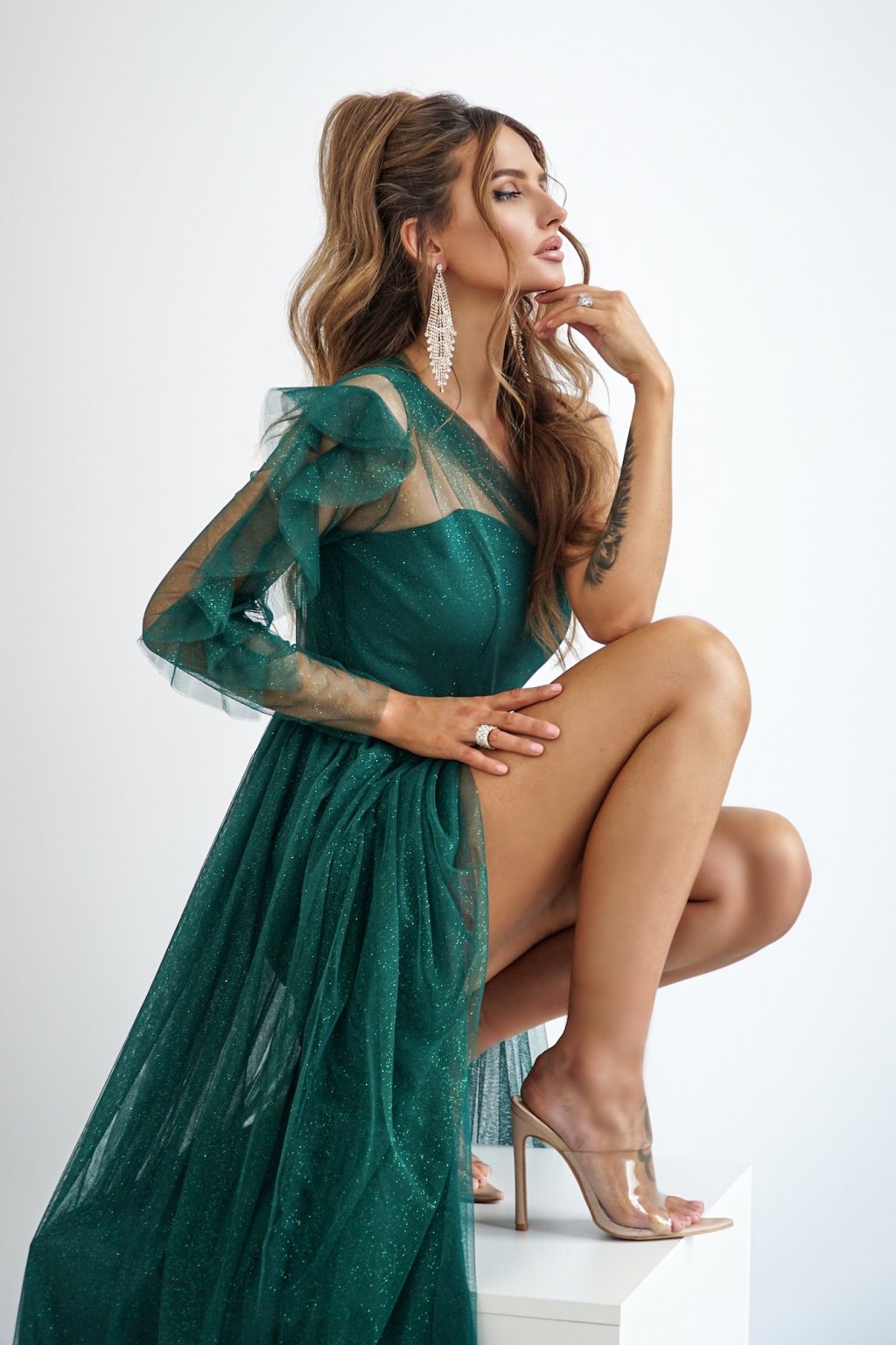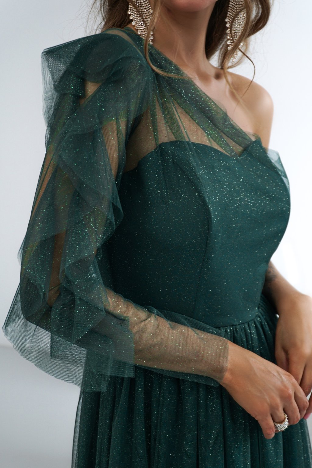Smaragdové tylové třpytivé šaty