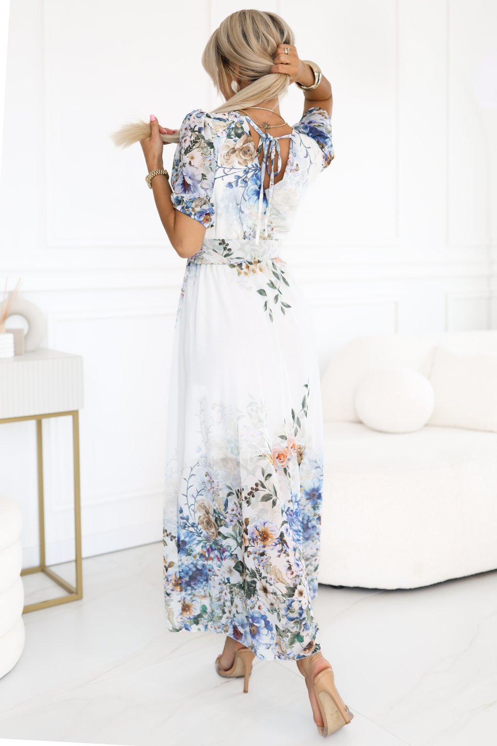 Romantické maxi šaty s jemným květinovým vzorem a zavinovacím výstřihem podtrhnou tvou ženskost a eleganci. Pás zdůrazněný páskem krásně tvaruje postavu a lehký materiál zajistí pohodlí během celého dne – ideální pro letní procházky, oslavy i dovolené u moře.