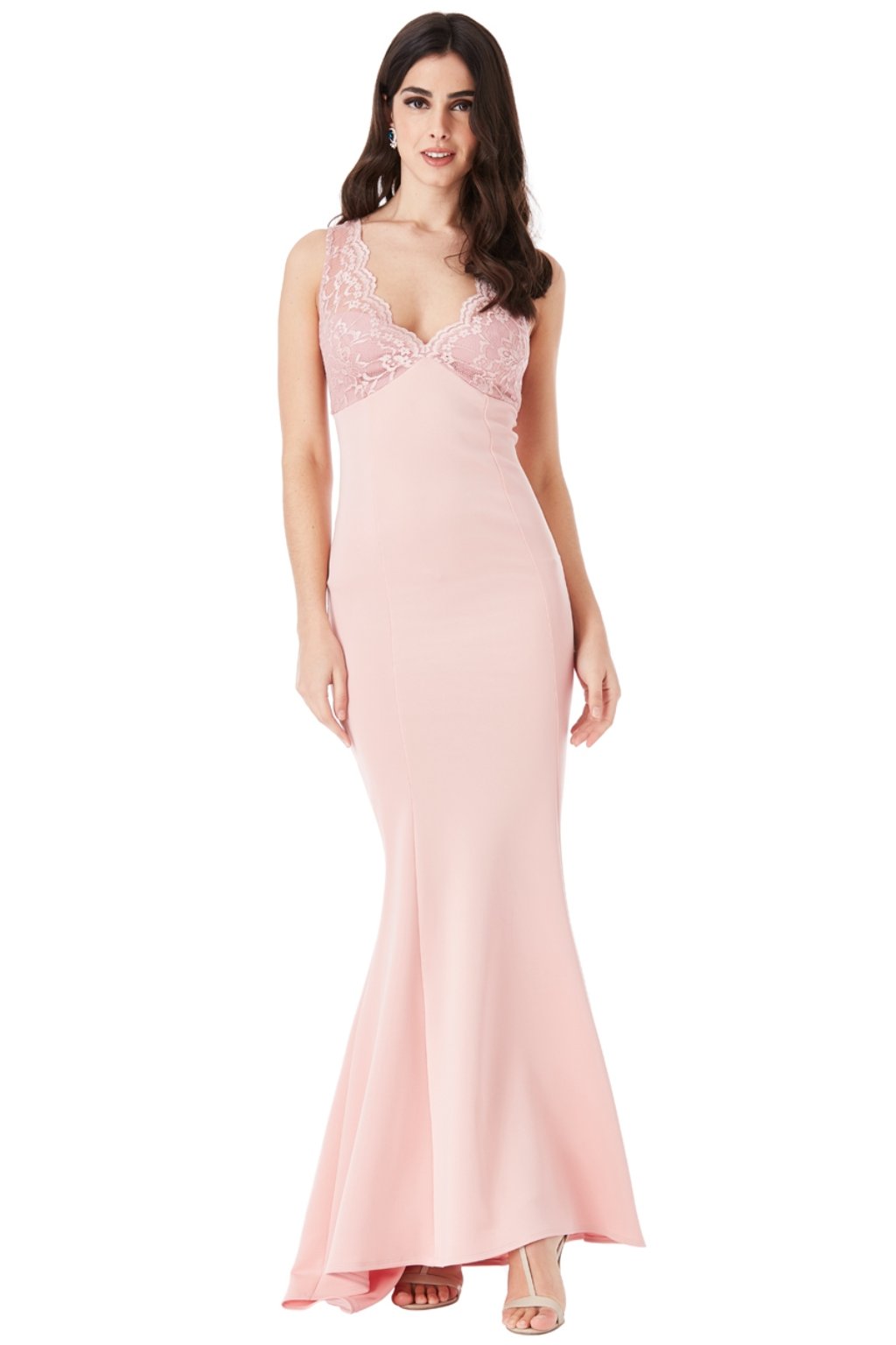 Dlouhé společenské šaty jsou v horní části zdobené krajkou, která je v kombinaci s odhalenými zády vždy zárukou svůdného a šarmantního dojmu. Materiál je elastický, díky kterému vynikne vaše ženskost. Tento model potěší dámy nižší postavy. P>
