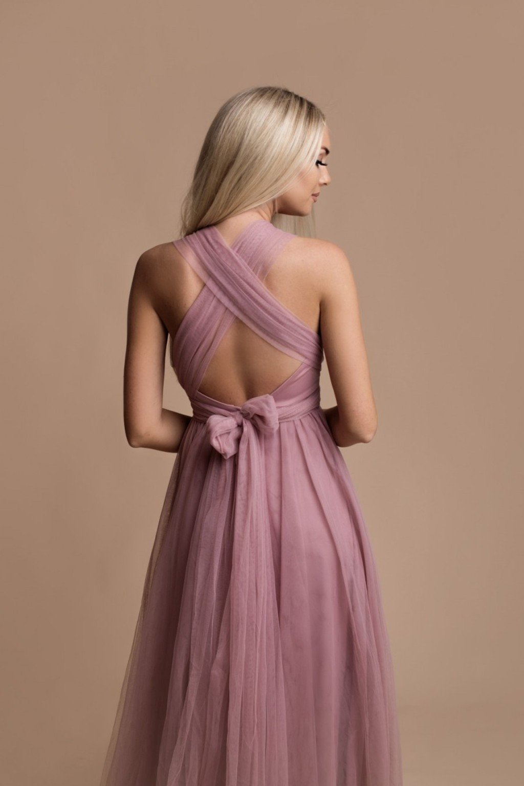 Starorůžové tylové šaty s vázáním