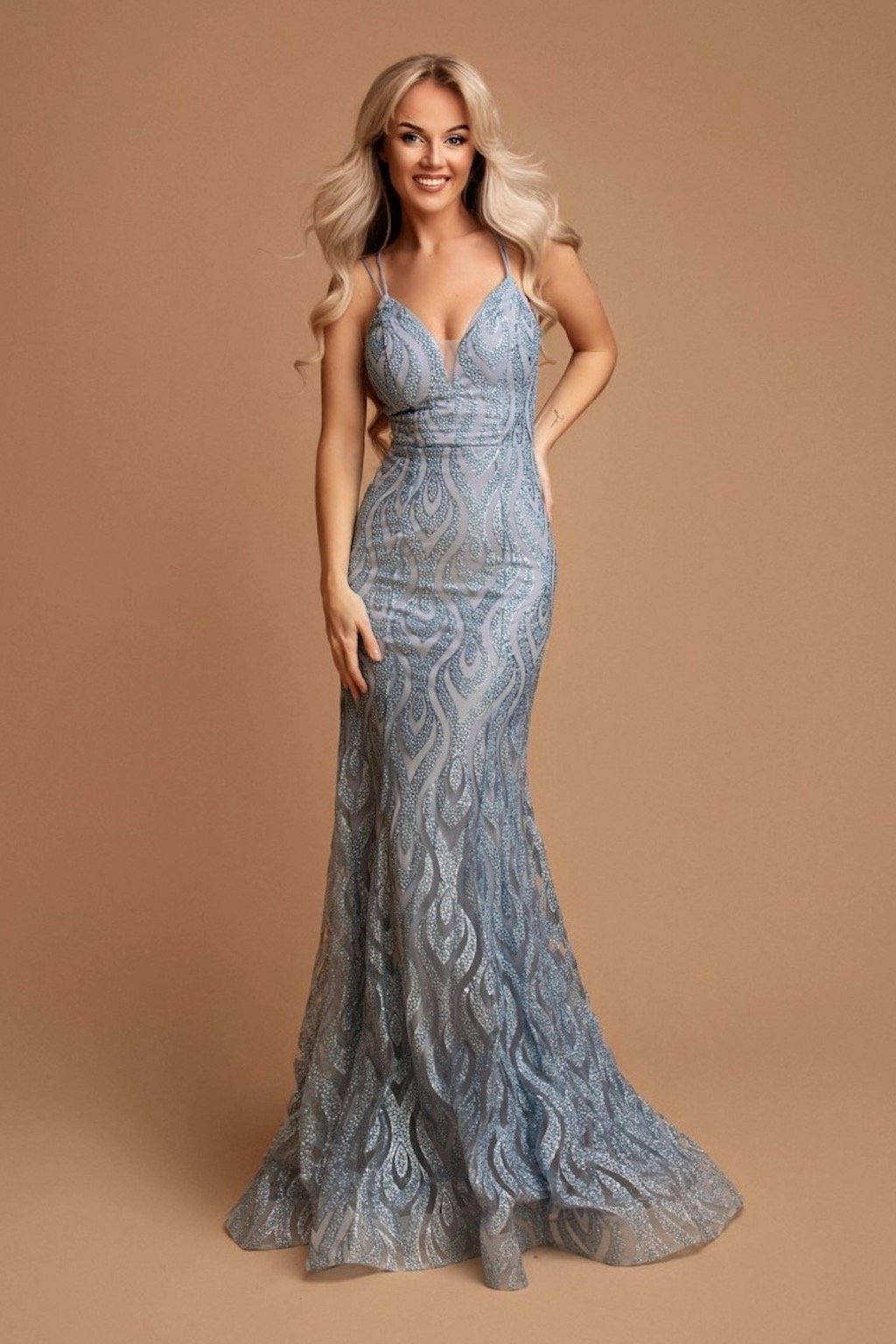 Tyto flitrované šaty potěší dámy, které chtějí na společenské události rozhodně zazářit! Šaty mají záda zdobená šněrováním a na prsou jsou vyztužené. Třpytky nejsou všity do materiálu, přirozeně opadávají.