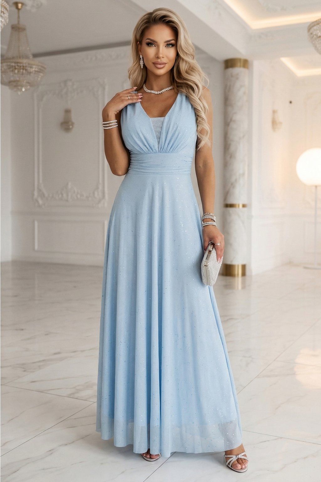 Světle modré tylové šaty se třpytkami