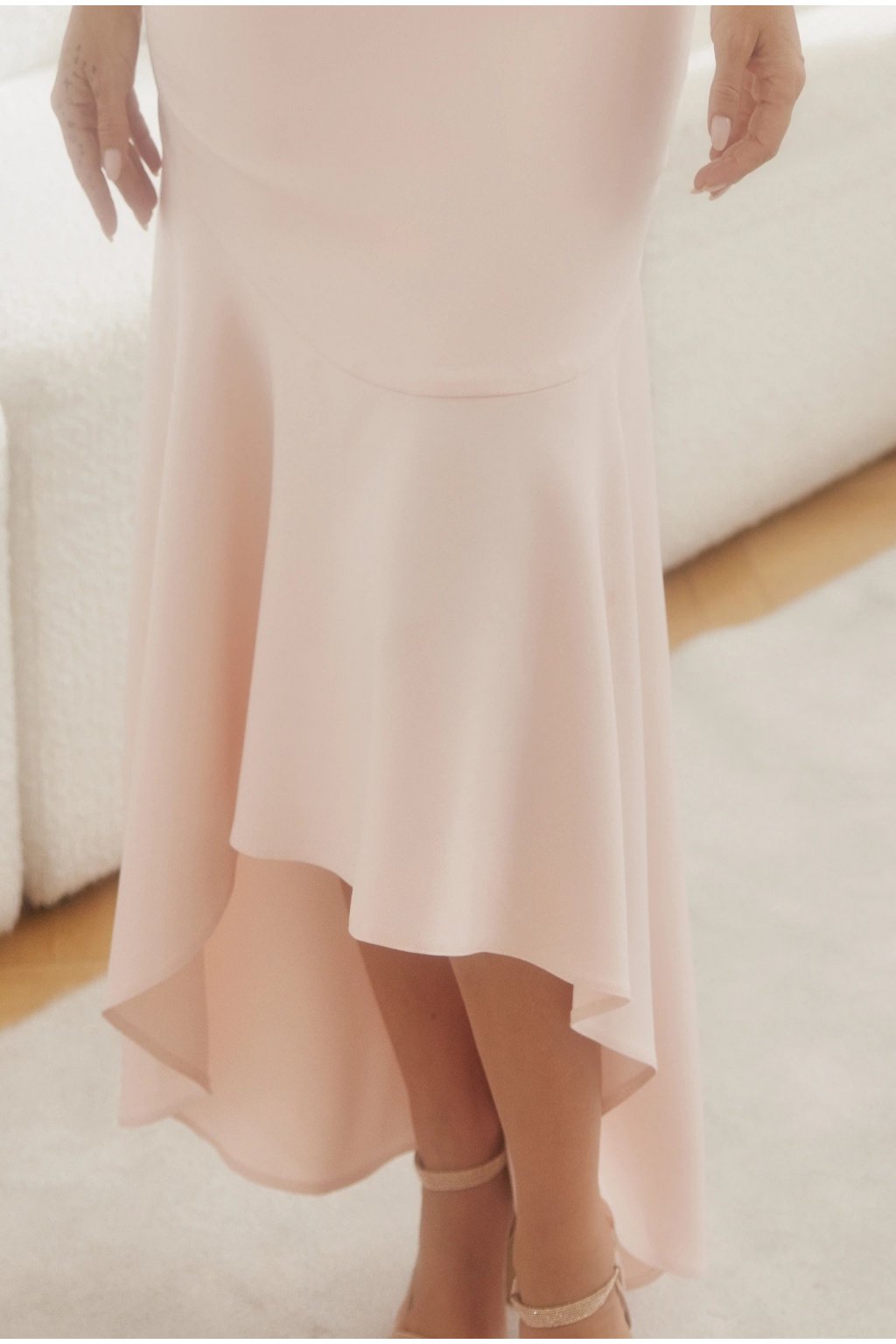 Do tohoto poutavého střihu se zajisté zamilují milovnice neobyčejných kousků. Sukně zdobená volány dodává šatům výjimečnost a velkou dávku romantického nádechu. Materiál je mírně elastický. Vzadu se šaty zapínají zipem a ramínka jsou nastavitelná.