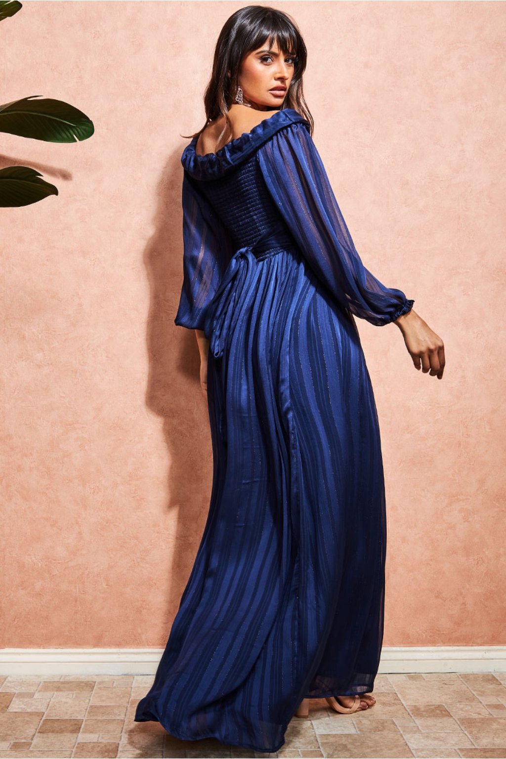 Krásné romantické šaty z vás vykouzlí okouzlující dámu. Jemně lesklý materiál a poodhalená ramena dělají tyto šaty nepřehlédnutelnými. Na zádech jsou prošívané gumičkami.