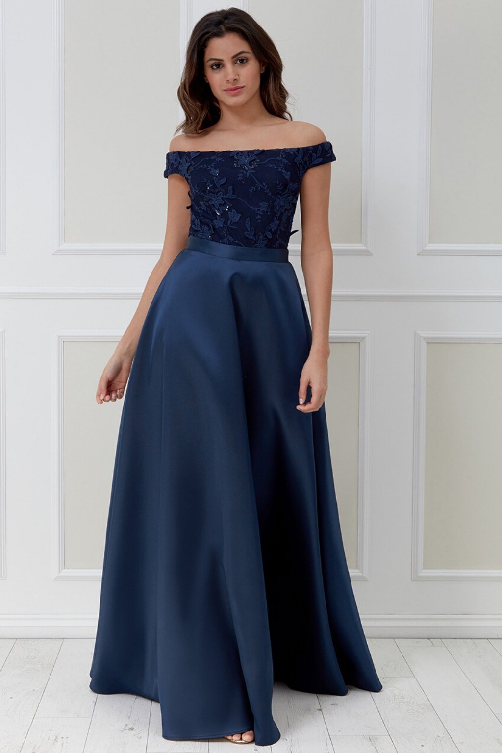 Romantické vyšívané kytičky, rafinovaně odhalená ramena a nadýchaná sukně, která je podtržena jemným leskem - kombinace, která přitáhne zrak každého v místnosti. Vzadu se šaty zapínají zipem.