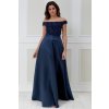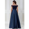 Tmavě modré společenské šaty s vyšívanými květinkami