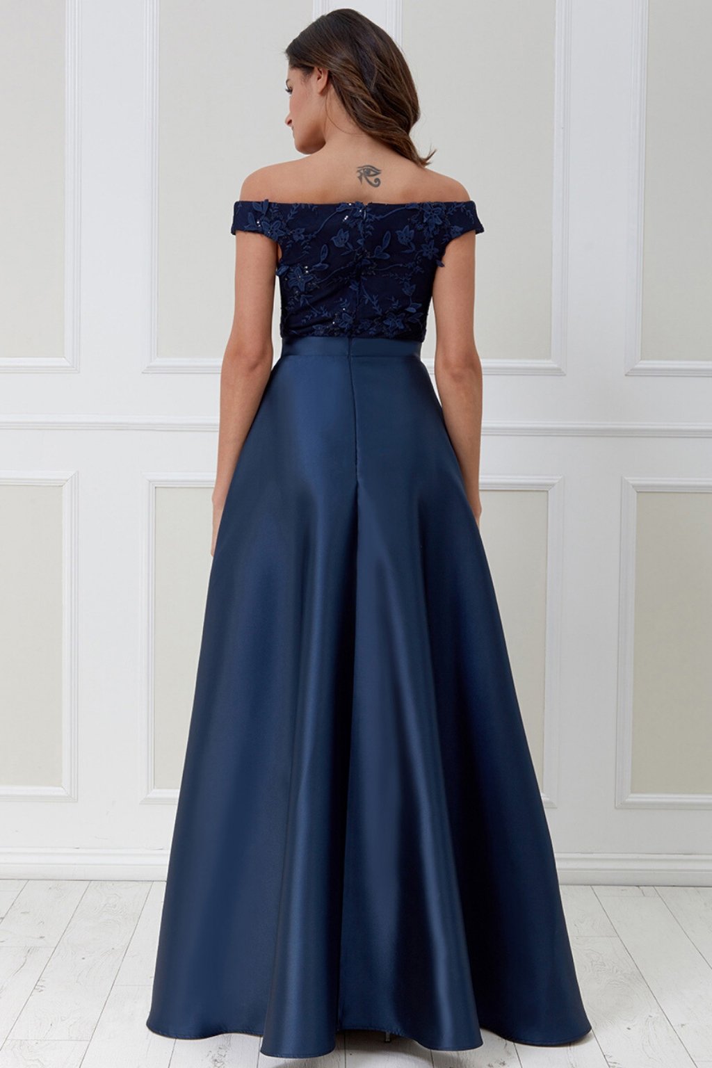 Romantické vyšívané kytičky, rafinovaně odhalená ramena a nadýchaná sukně, která je podtržena jemným leskem - kombinace, která přitáhne zrak každého v místnosti. Vzadu se šaty zapínají zipem.