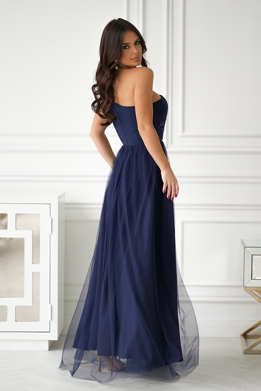 Tmavě modré tylové šaty s flitry