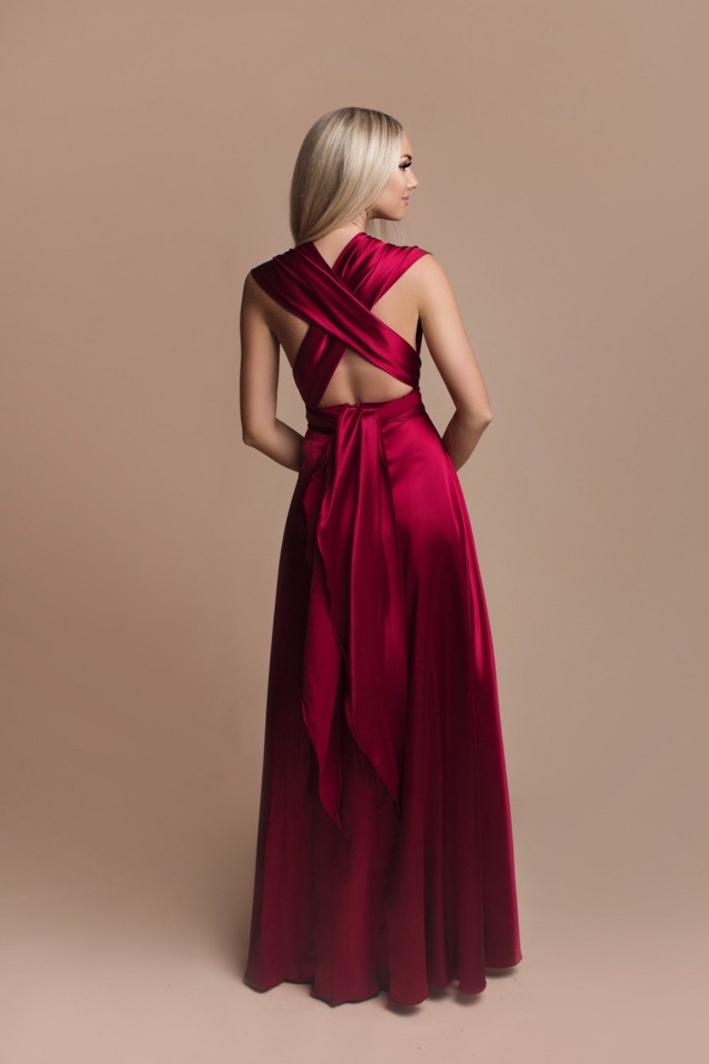 Odhalená záda jsou vždy zárukou podmanivého vzhledu a jinak to nebude ani při těchto šatech. Se špetkou nápaditosti si šaty můžete jakkoli uvázat. Na sukni se zapínají zipem.