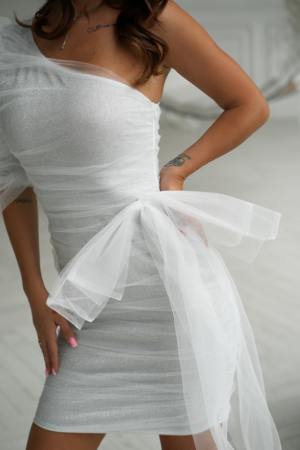 Bílé krátké šaty s mašlí